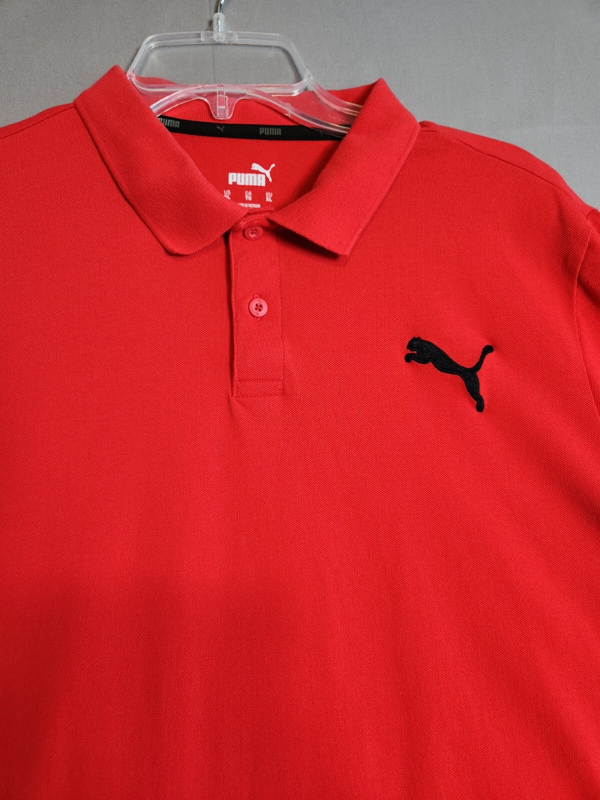 как выглядит Puma Shirt Mens XL Red Collared Short Sleeve Pullover Polo Black Cat фото