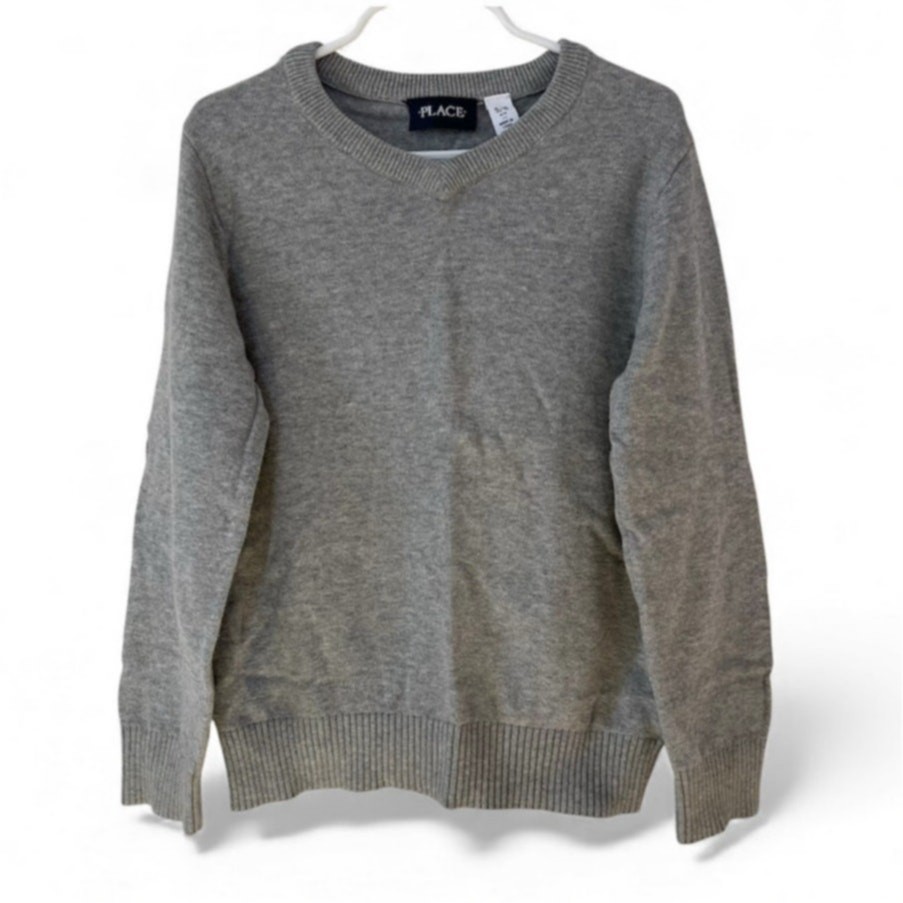 The Children's Place Gray V-Neck Sweater Boys Size 5/6 Lightweight Cotton