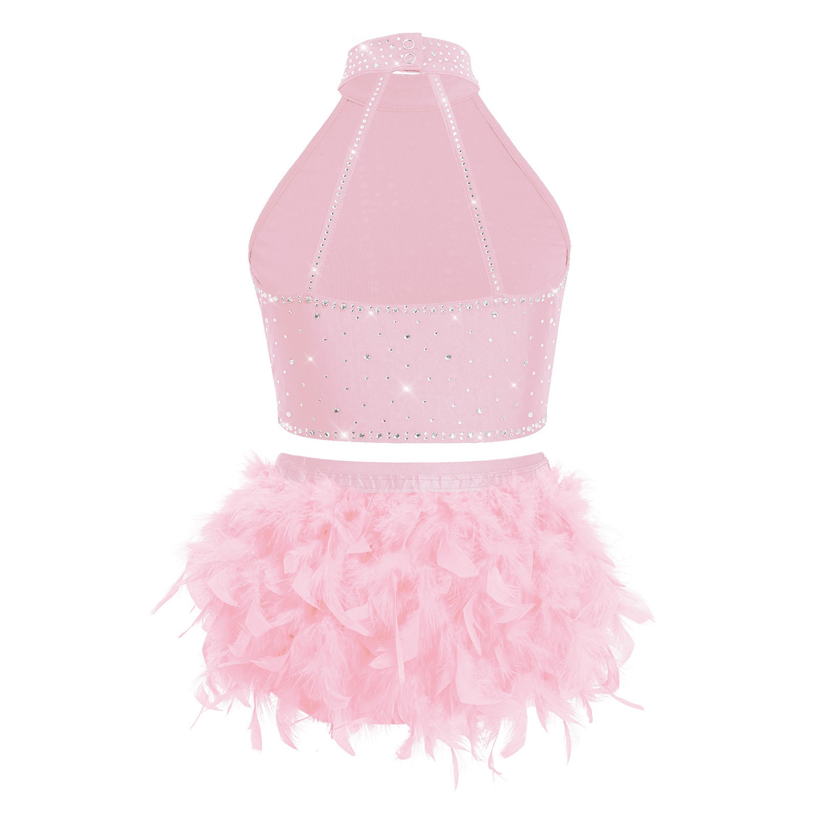Girls Latin Dance Party Feather Fringe Skirt Competition Crop Top Photo Prop