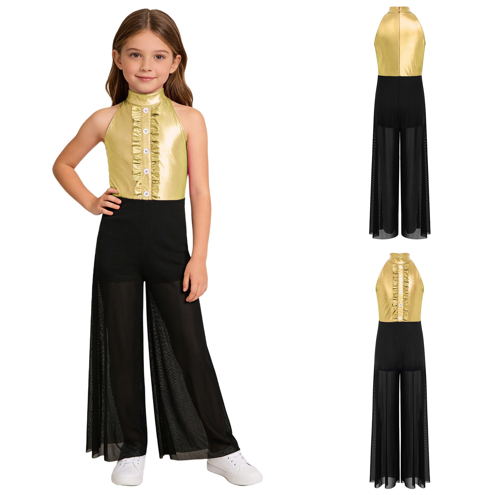 Girls Jumpsuit Kids Jazz Dance Party Metallic Bodysuit Competition Leotard Gift