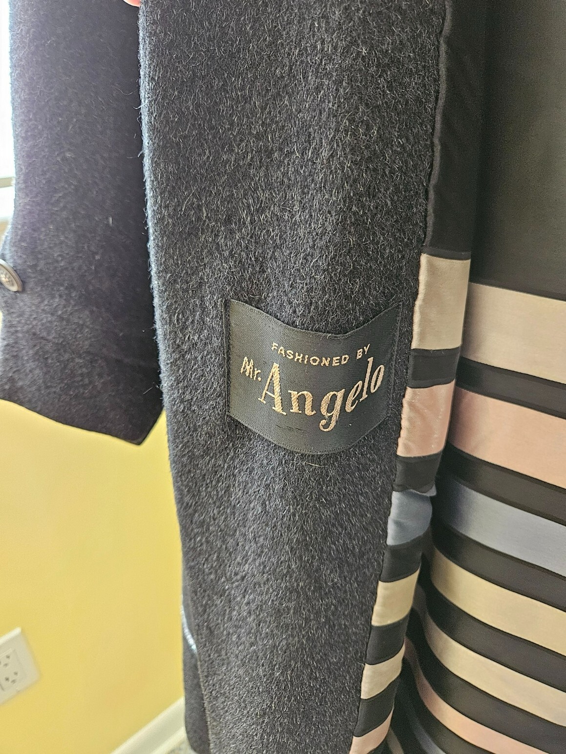 как выглядит Mr. Angelo Wool Coat Womens Sz M-L Black Striped Lining Old Money Vintage фото