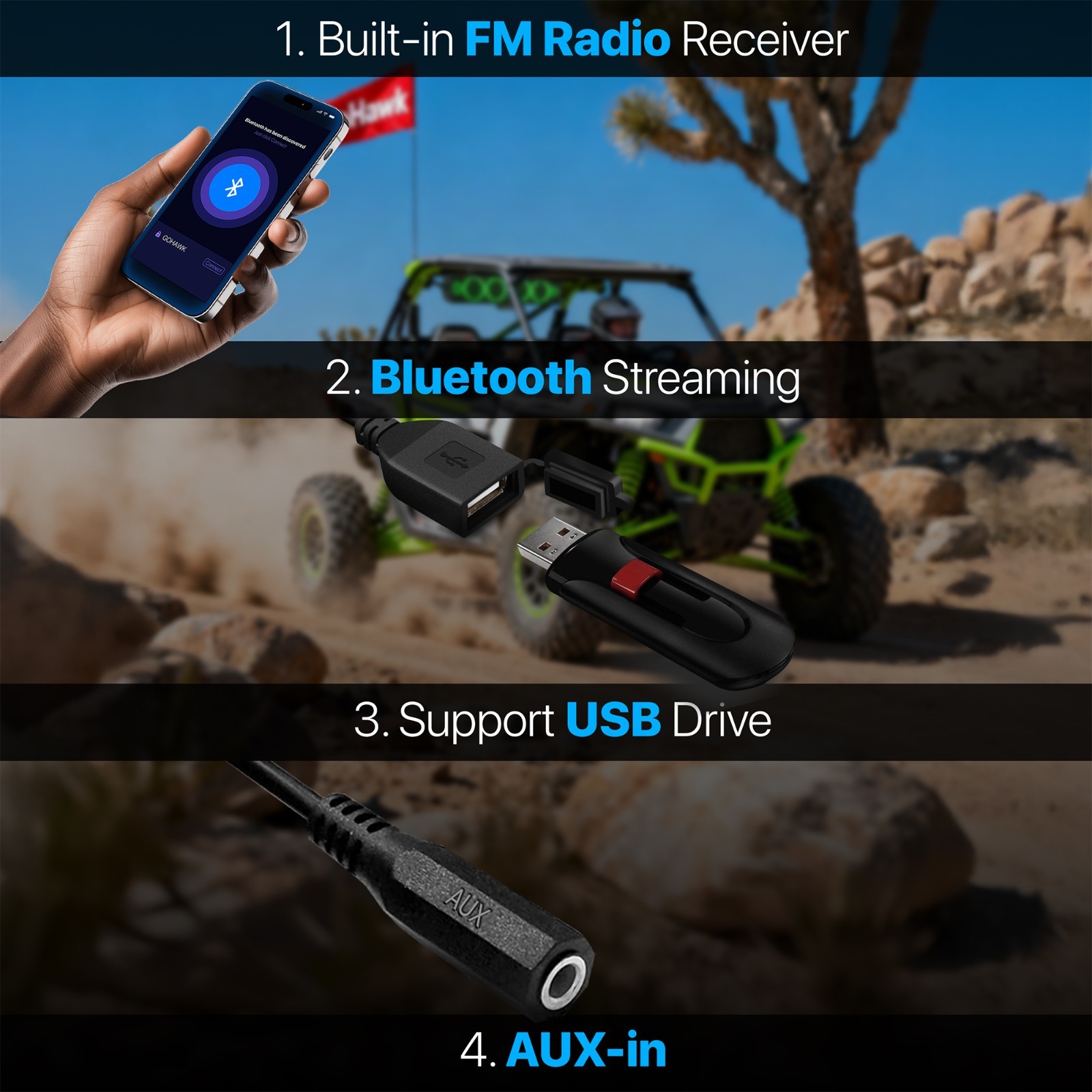 8 Speaker Bluetooth Waterproof 600W UTV Sound bar Audio Radio System Polaris RZR