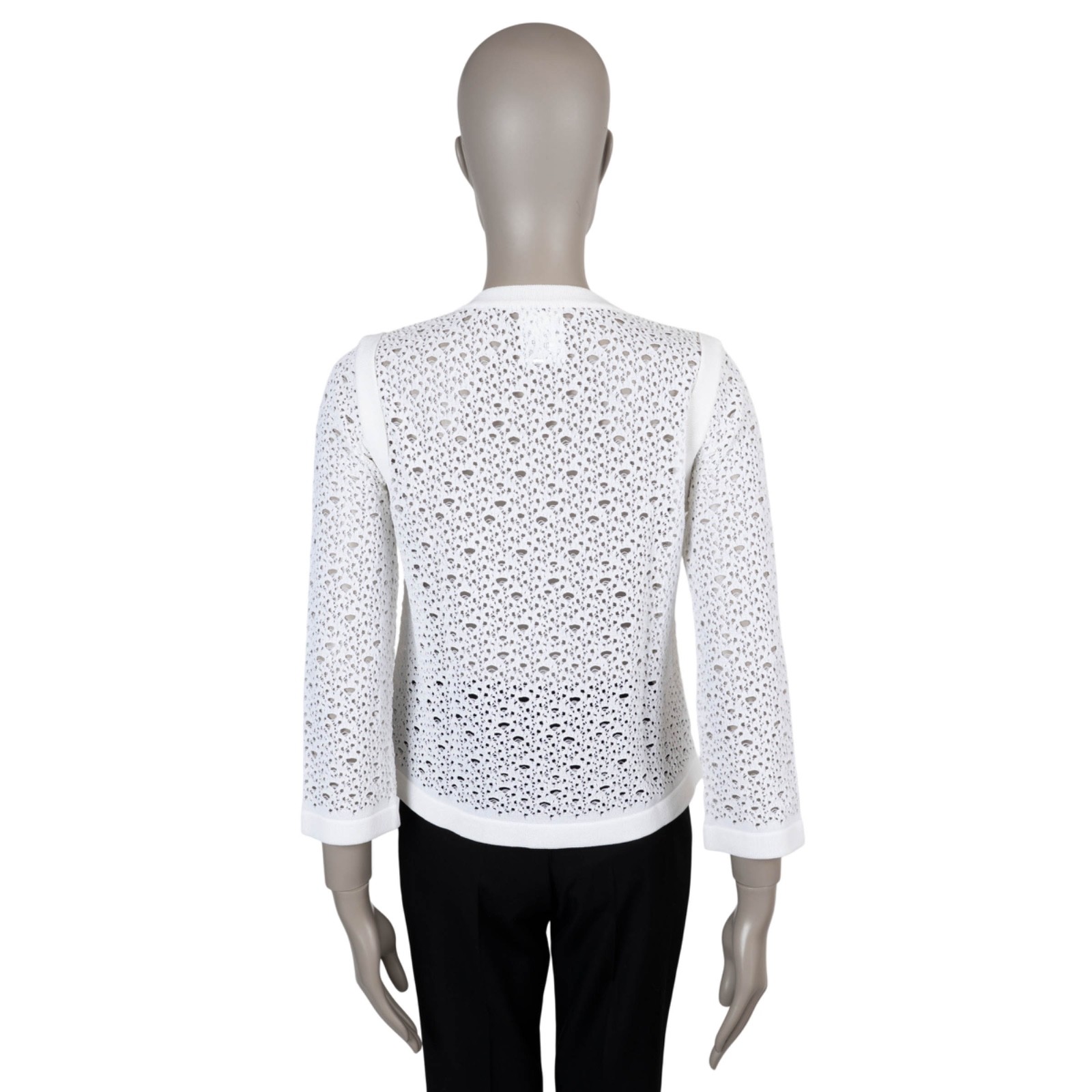 как выглядит 73757 auth CHANEL white cotton 11S OPEN CROCHET KNIT Cardigan Sweater 40 M фото