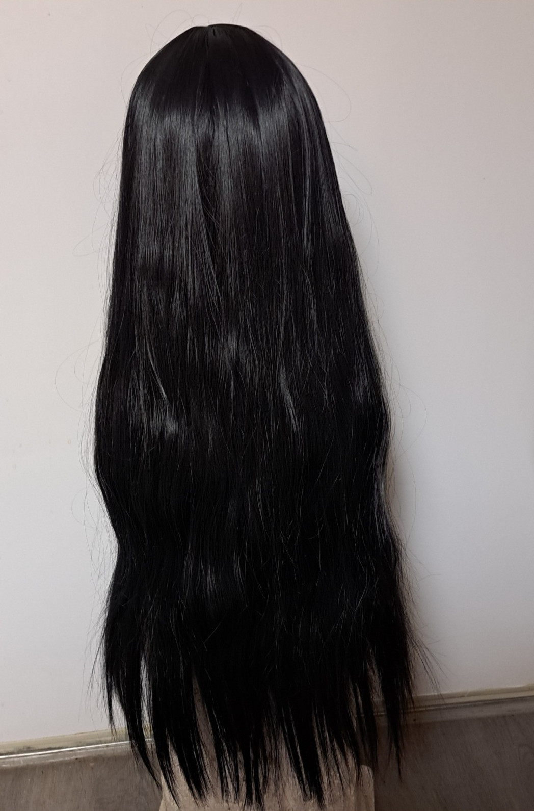 как выглядит Wig Dark Brunette 27" long w/ bangs straight synthetic hair Halloween Anime etc фото