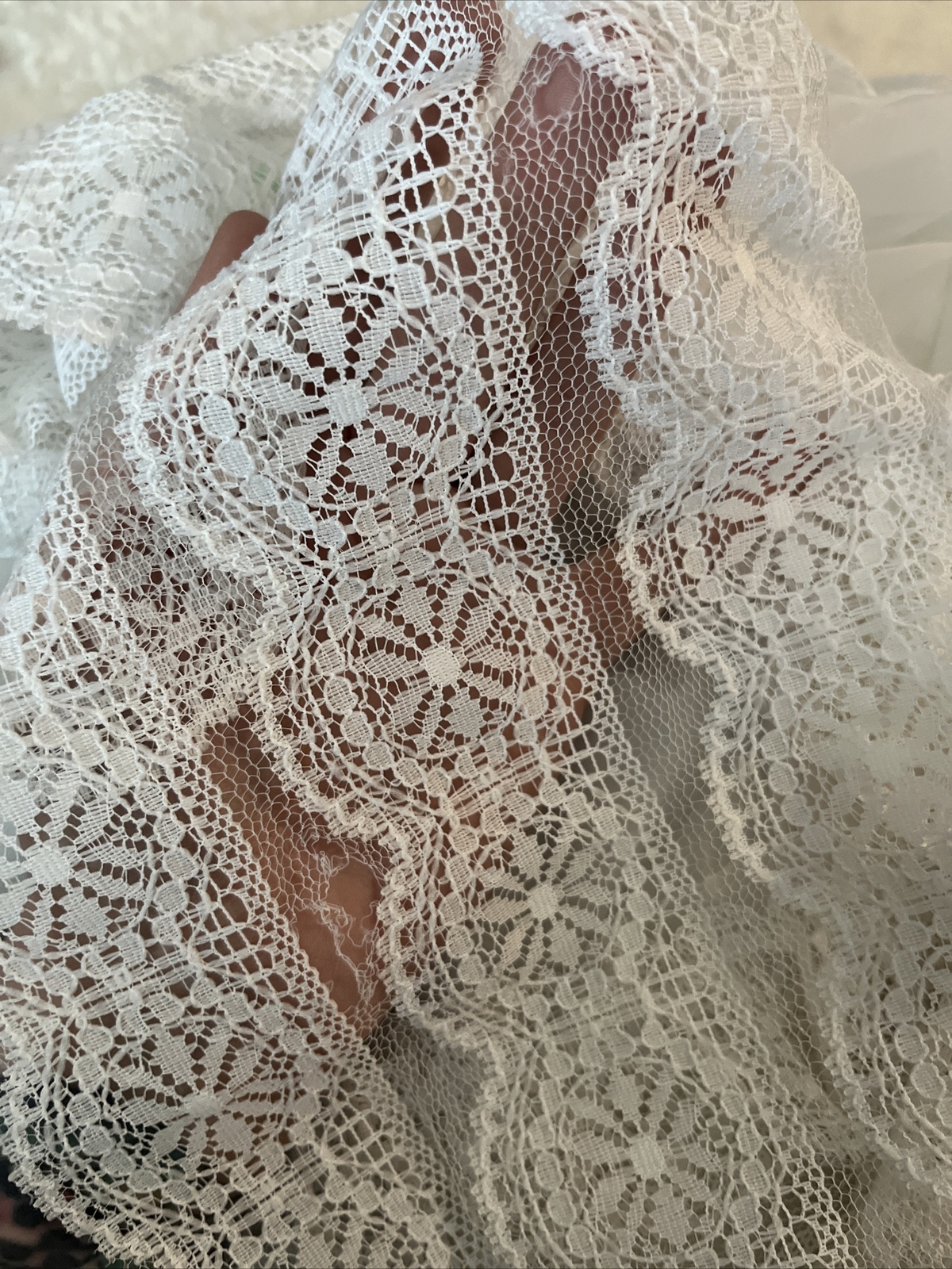 как выглядит Vintage Martha s Miniatures Girls White Tiered Lace Ruffle Frilly Dress фото