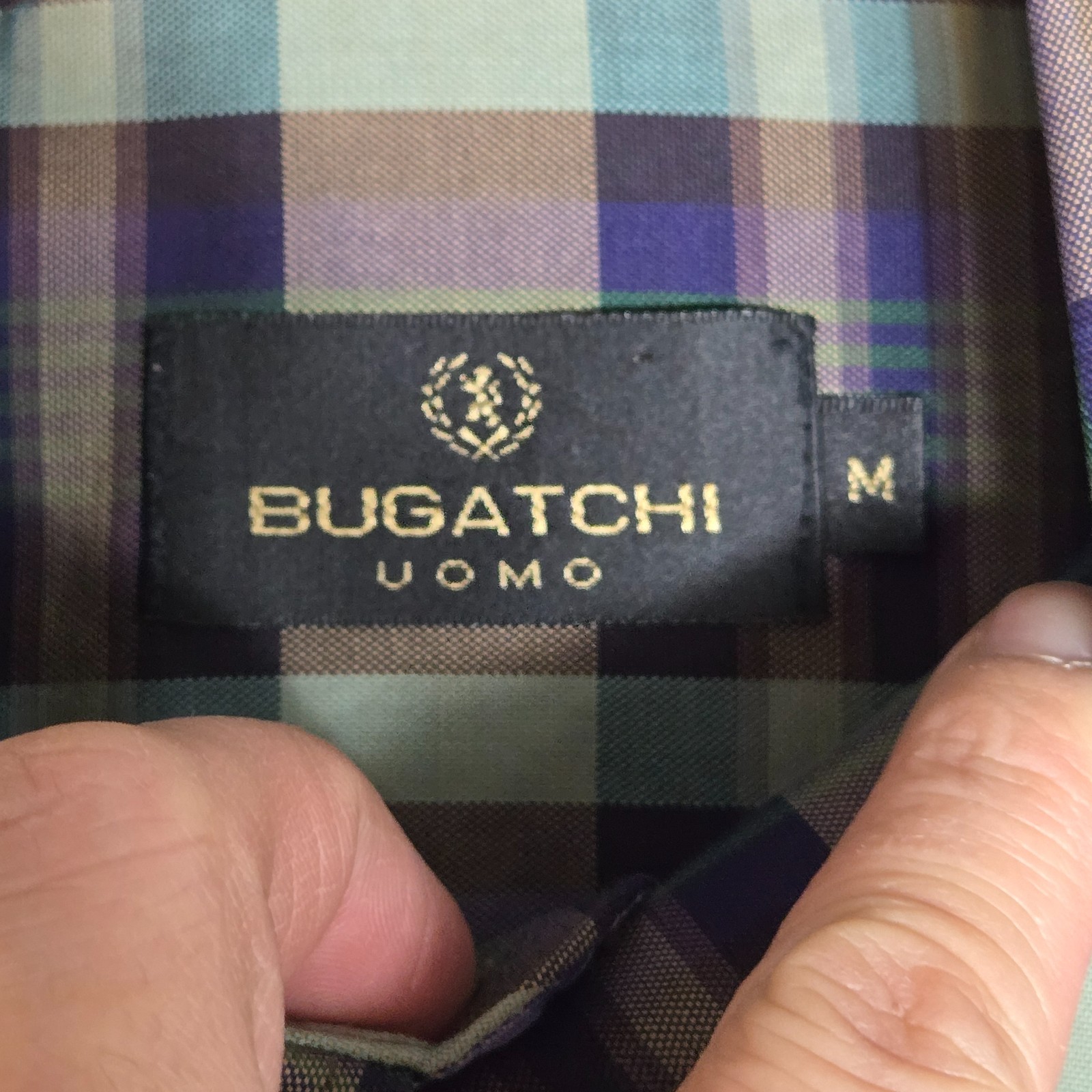 как выглядит Bugatchi Uomo Mens Button Shirt Sz M Plaid Striped Sz M Cotton Purple Muticolor фото