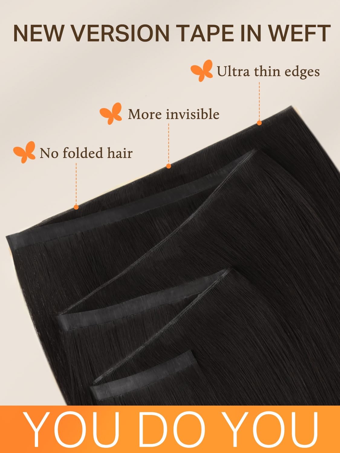DOORES Tape in Weft Hair Extensions Human Hair, Dark Brown 18 Inch 50g, Wide PU
