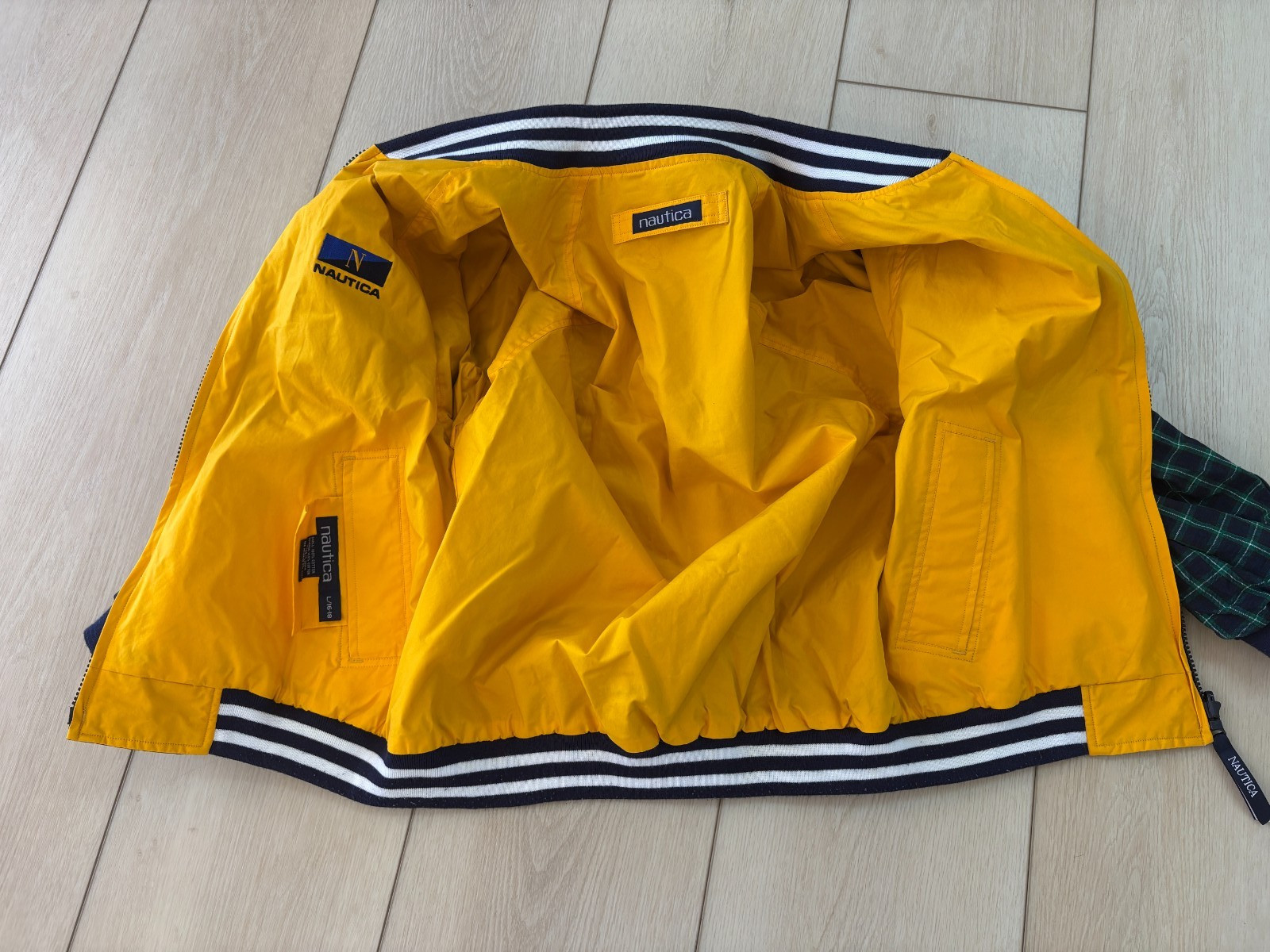 как выглядит Vintage Nautica Jacket Windbreaker 90s Spell Out Kids Sailing Large REVERSIBLE фото