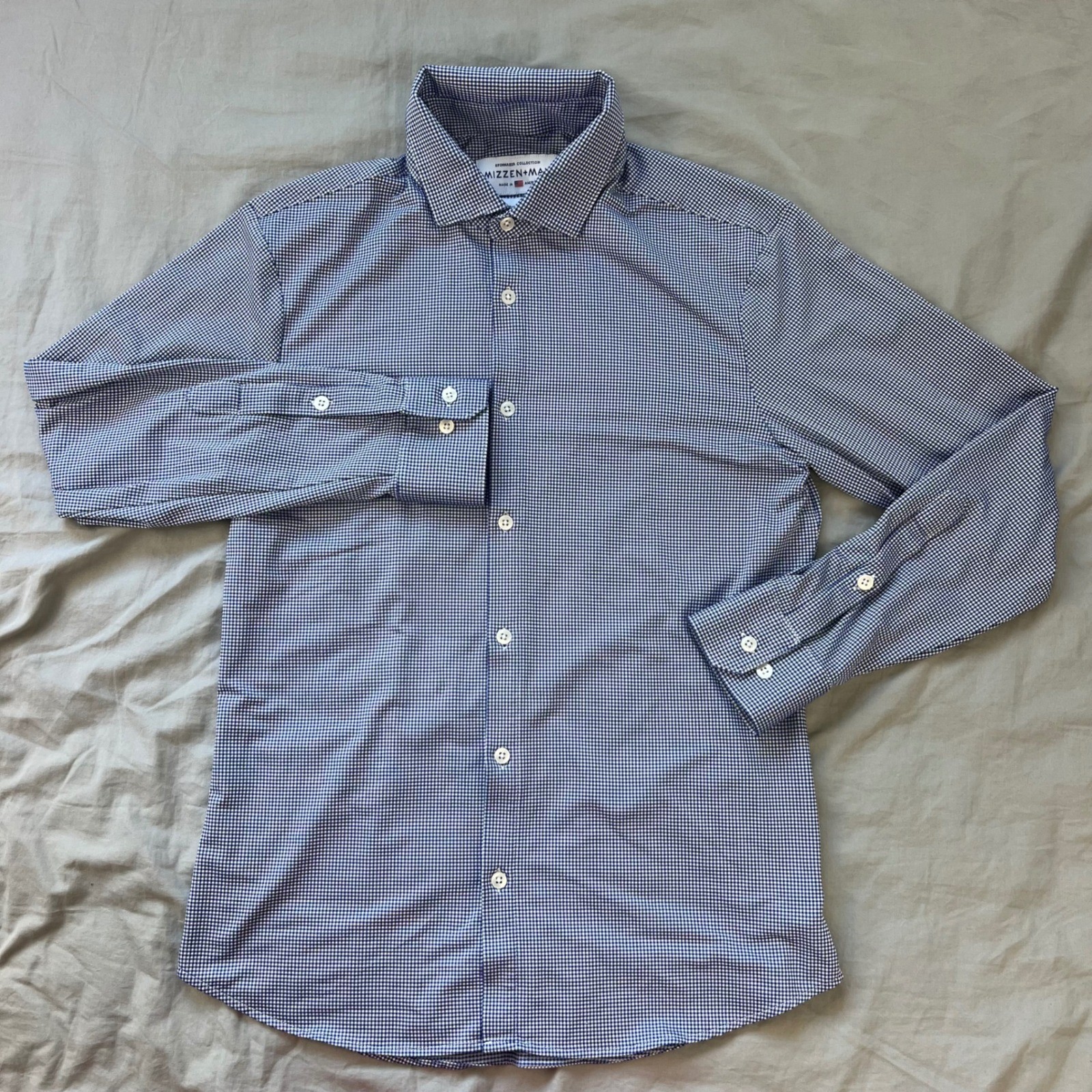 как выглядит Mizzen Main Mens Button Shirt Medium Trim Fit Gingham Dress Blue White Spinnaker фото