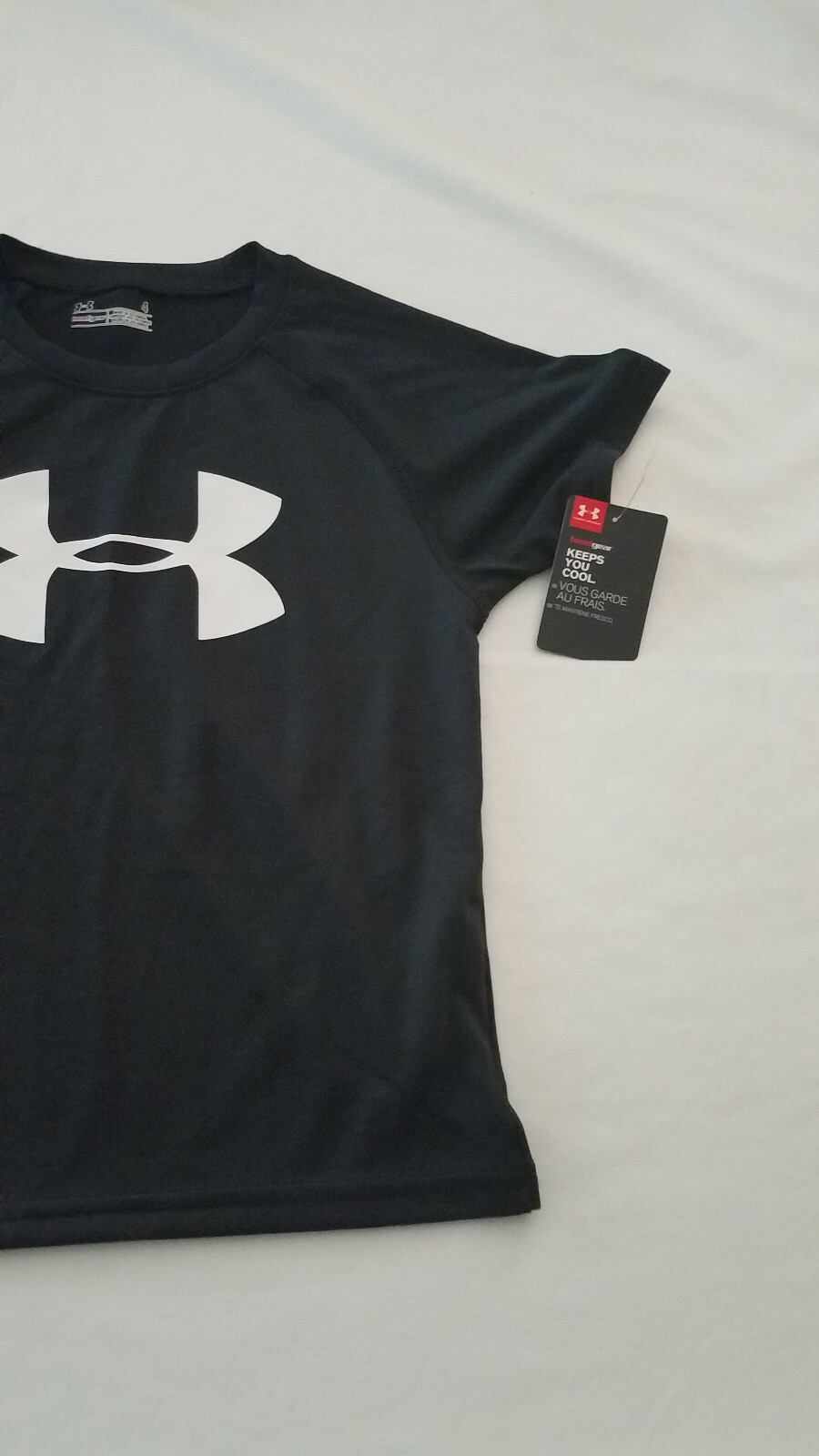 как выглядит UNDER ARMOUR BOYS size 4 POLYESTER SHORT SLEEVE SHIRT BLACK NWT NEW фото