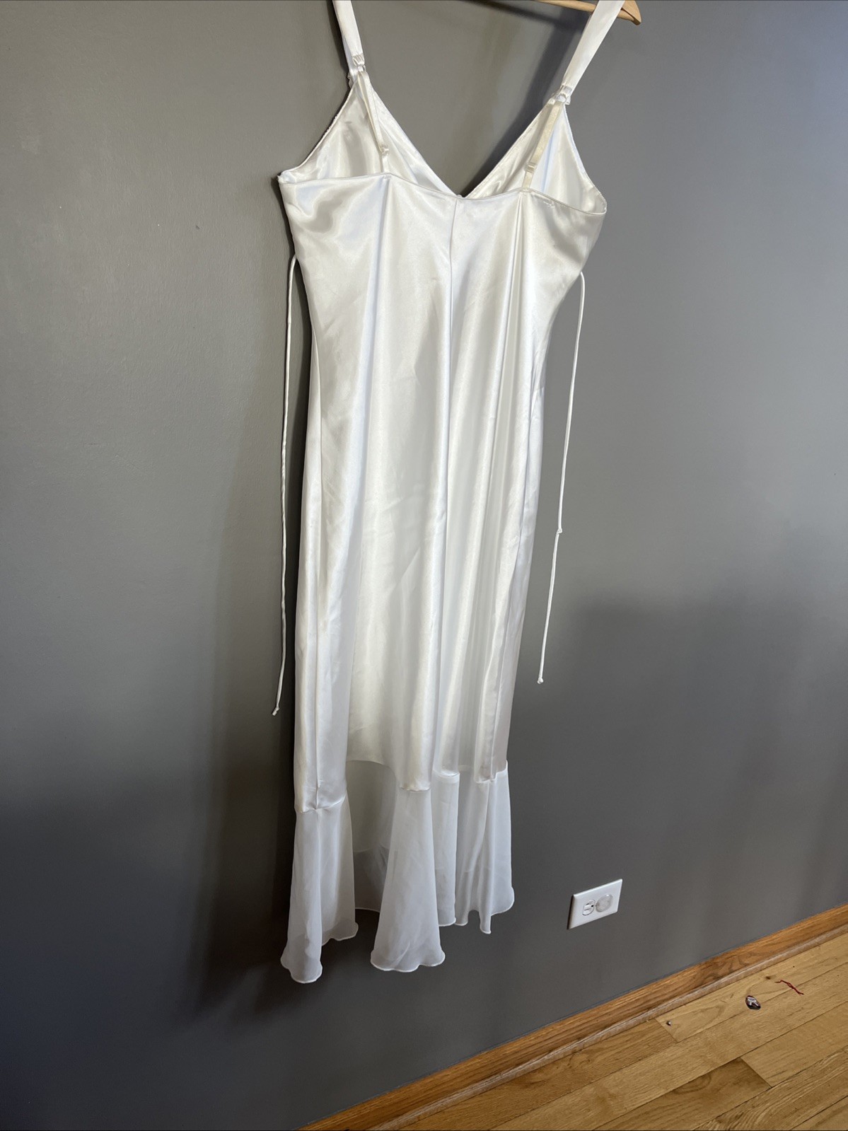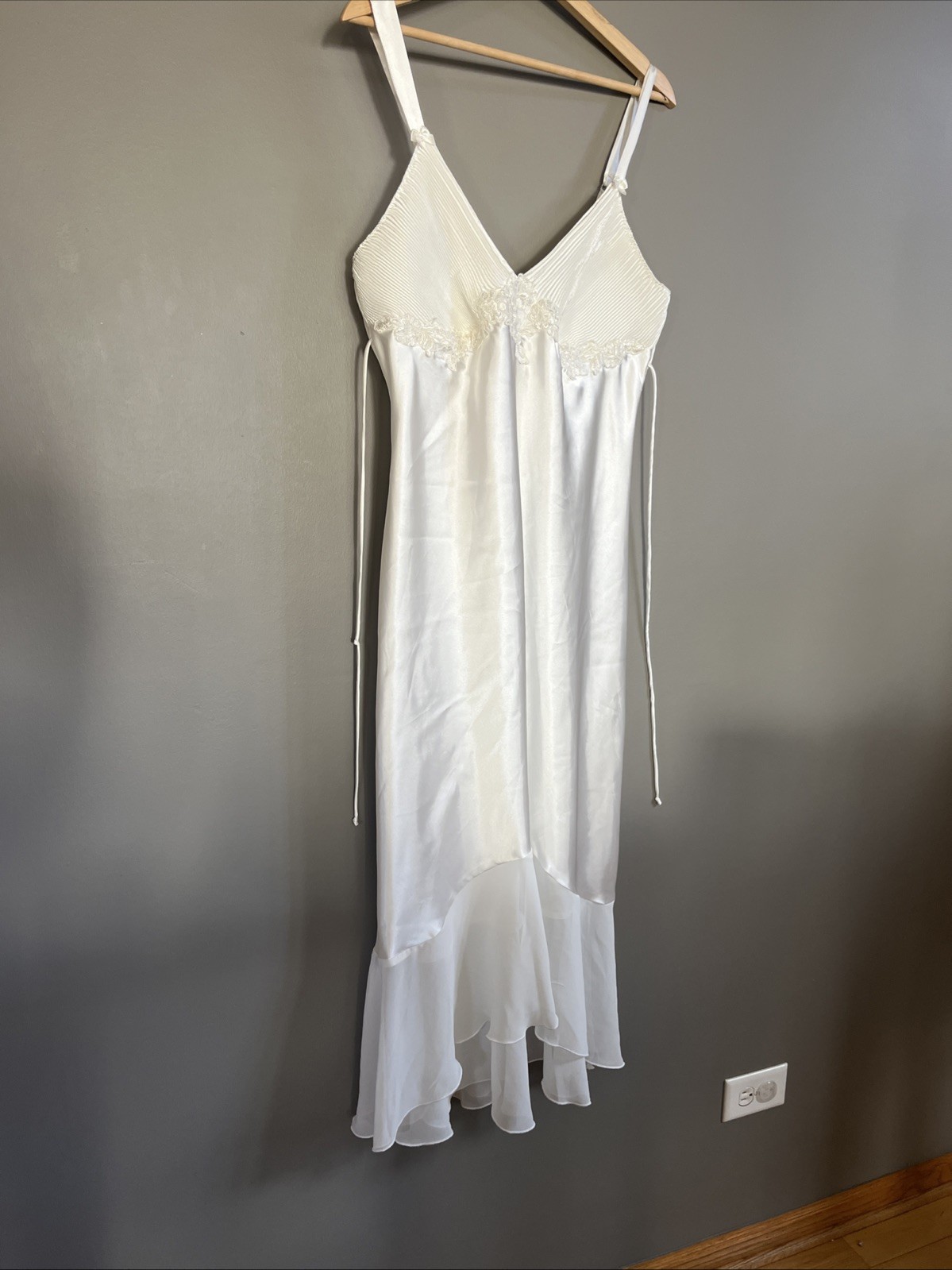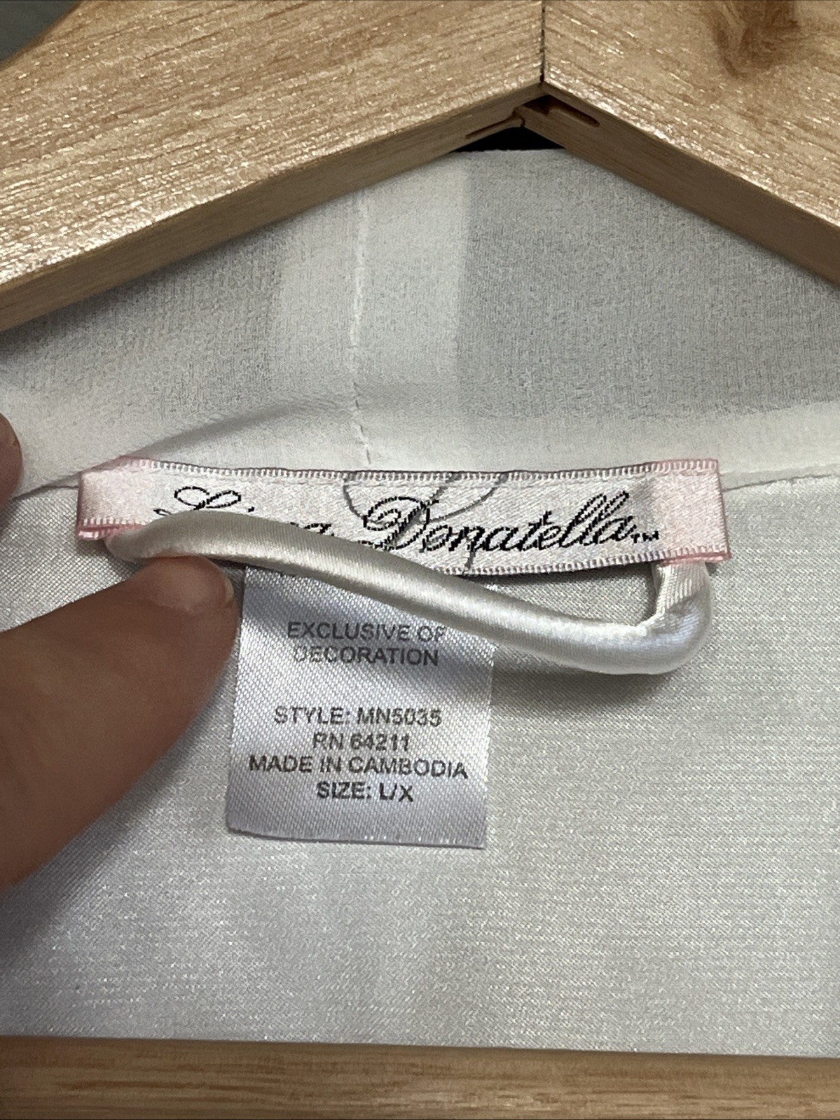 Linea Donatella White Satin Lace Pearl Bridal Robe and Nightgown Set L MN5035