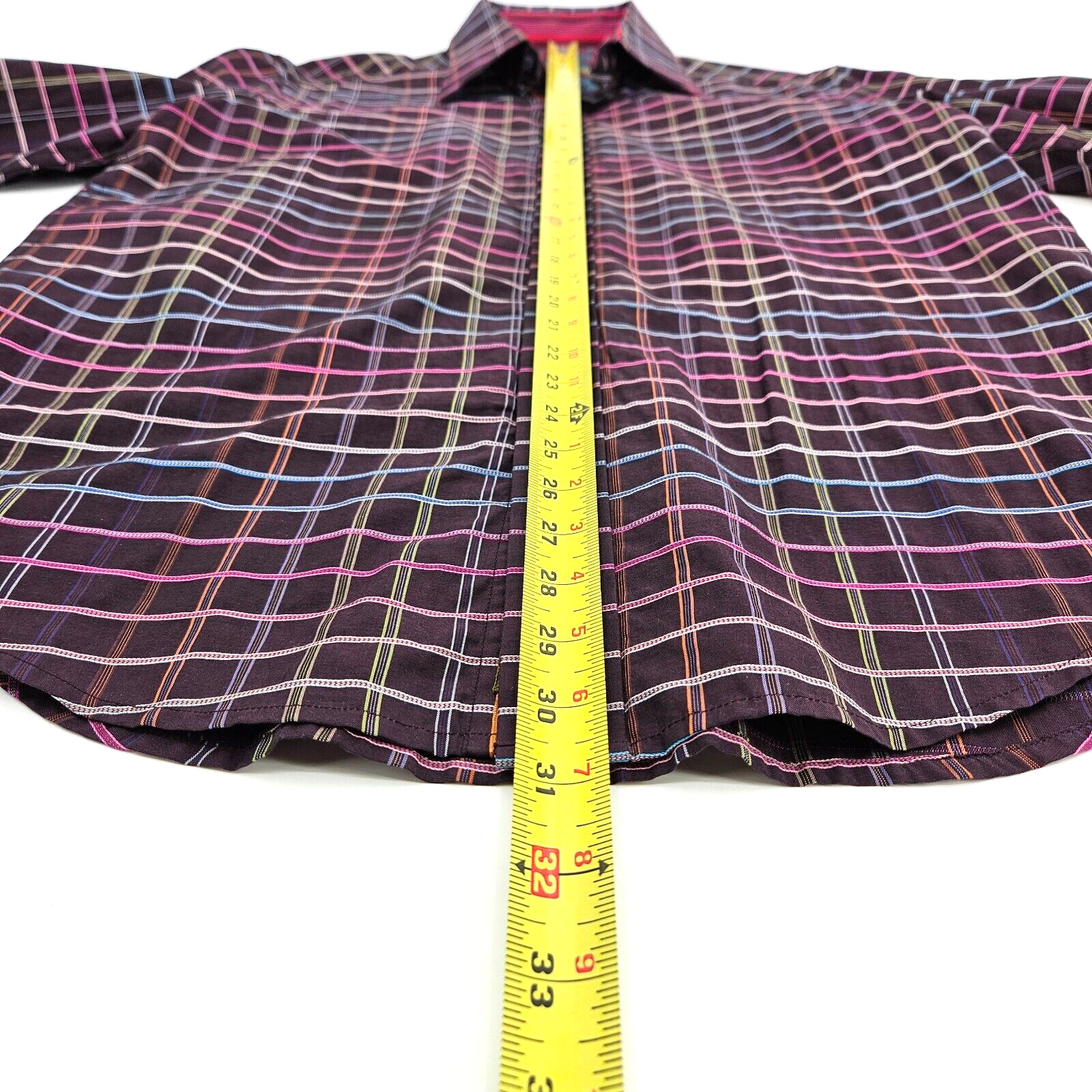 как выглядит Robert Graham Purple Graph Check Long Sleeve Button Up Dress Shirt Mens Medium фото