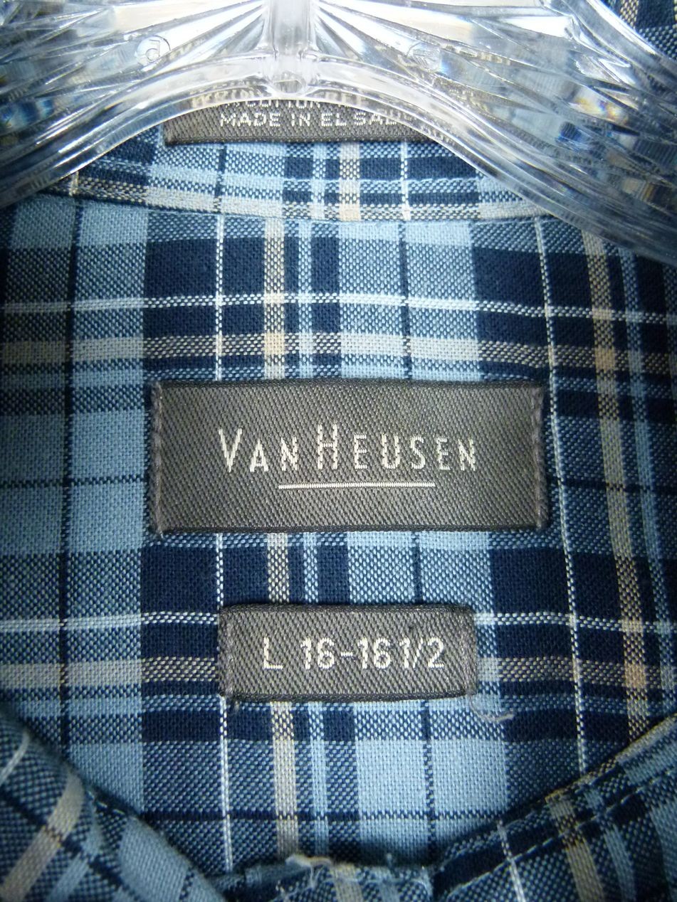 как выглядит Van Heusen Men Large Blue Plaid Wrinkle Free Oxford Cotton Blend Button-Up Shirt фото