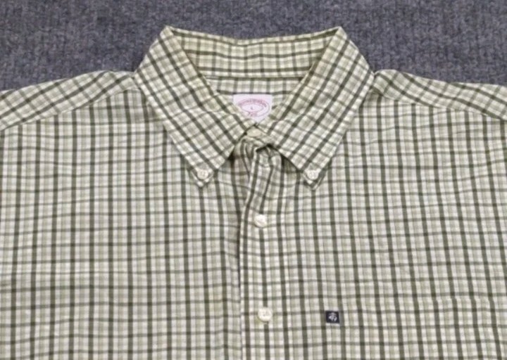 как выглядит Brooks Brothers Shirt Mens Large Green Button Check Cotton Long Sleeve Preppy фото