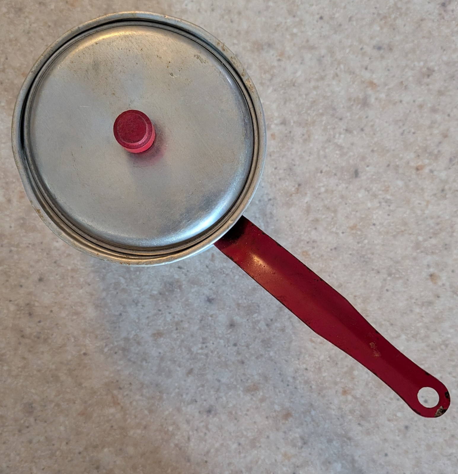 как выглядит Vintage Children s Aluminum Baking Cooking Toy Lot - Cooky Pan Double Boiler Red фото