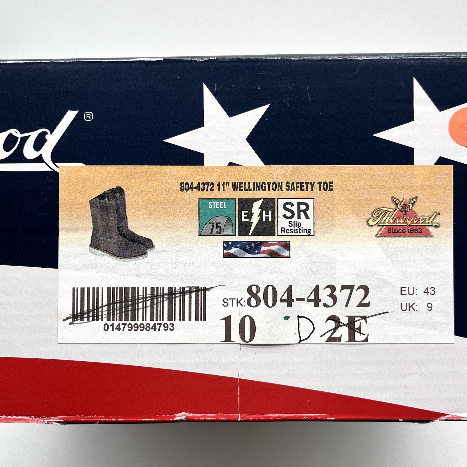Thorogood 11 Wellington Safety Toe Boots Sz 10 D 804-4372 USA Made Never Worn