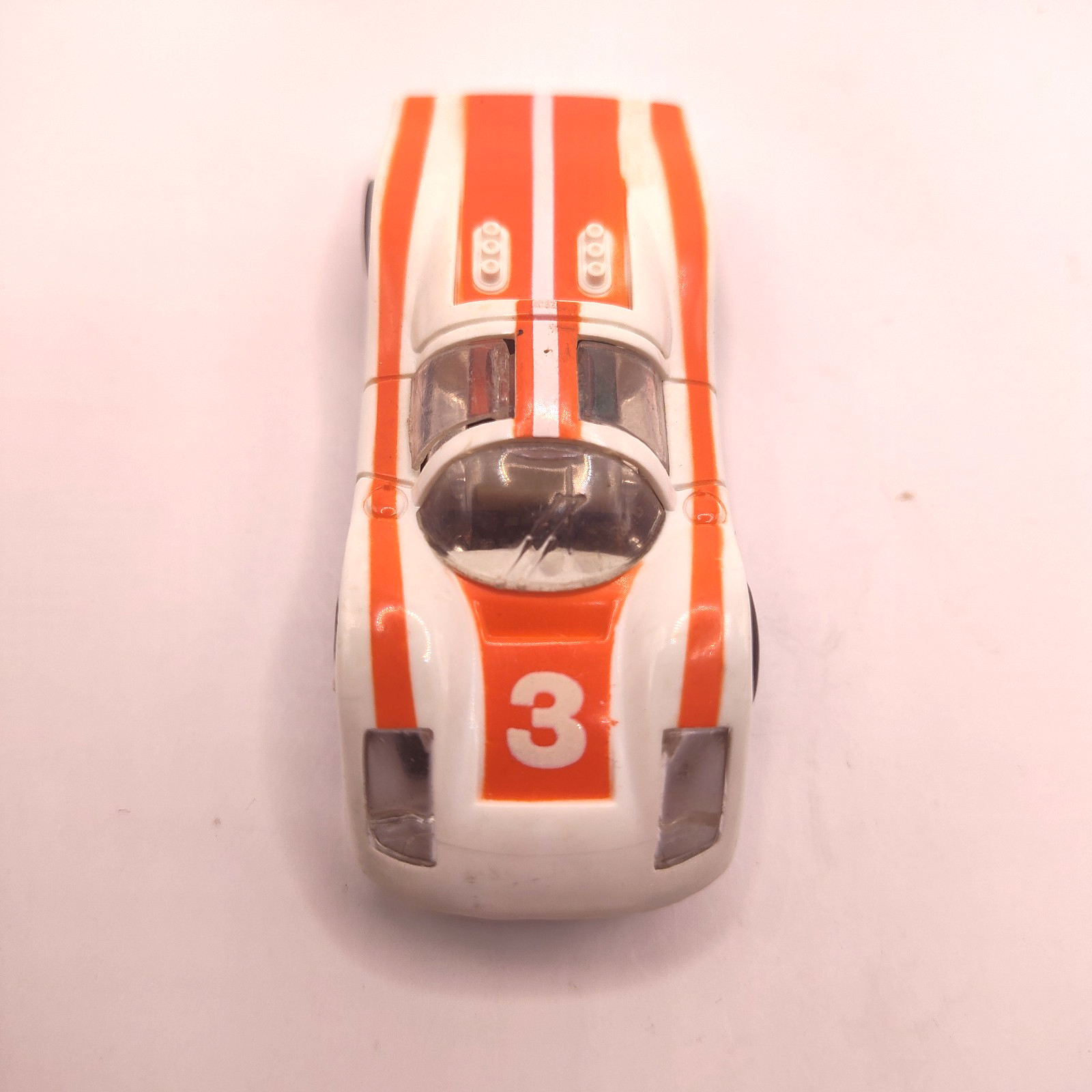Tyco Pro Porsche white orange 3 running Brass Pan chassis Vintage