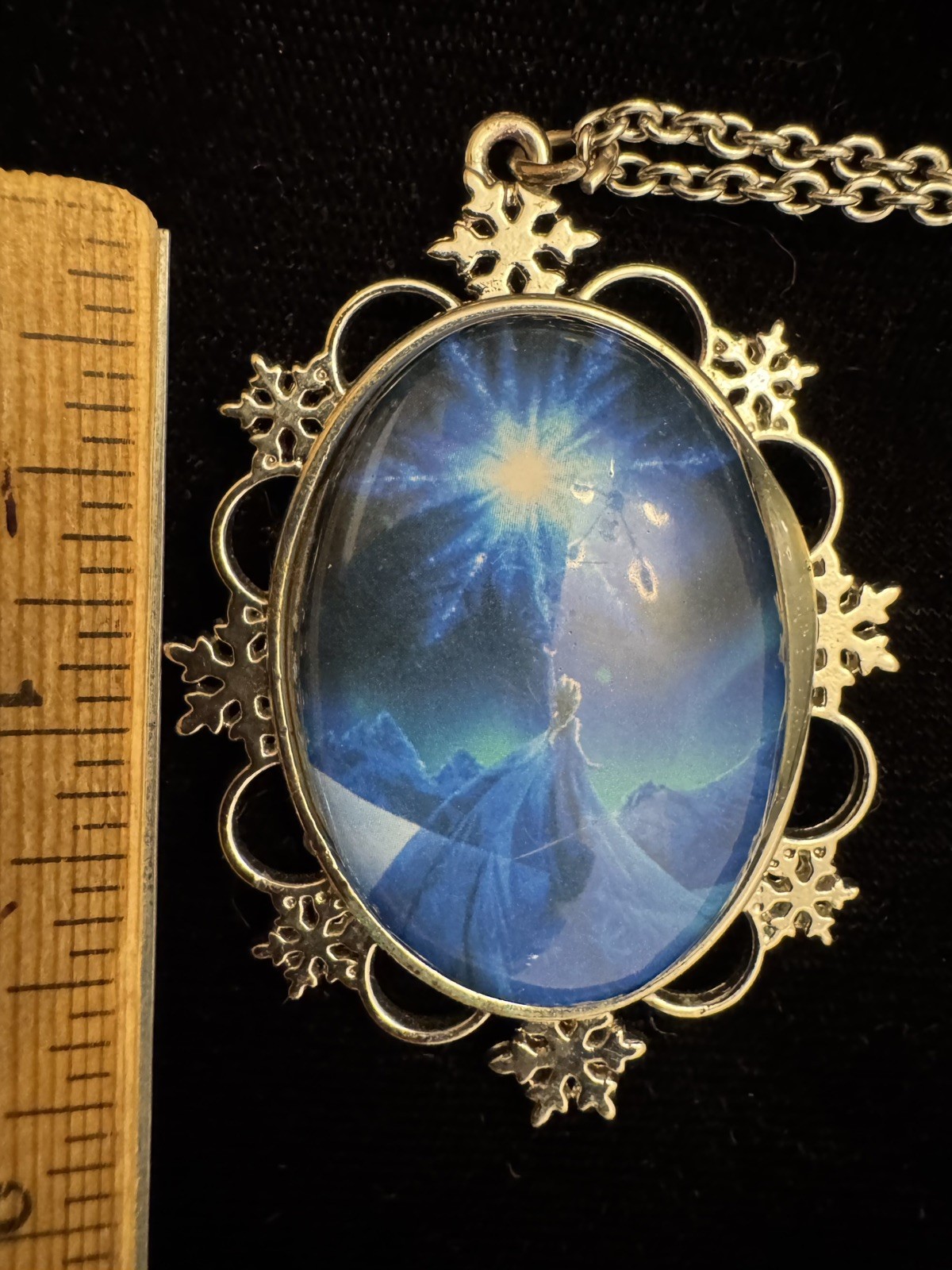 Disney's, Frozen Elsa Pendant Snowflake Necklace Silver Tone 24