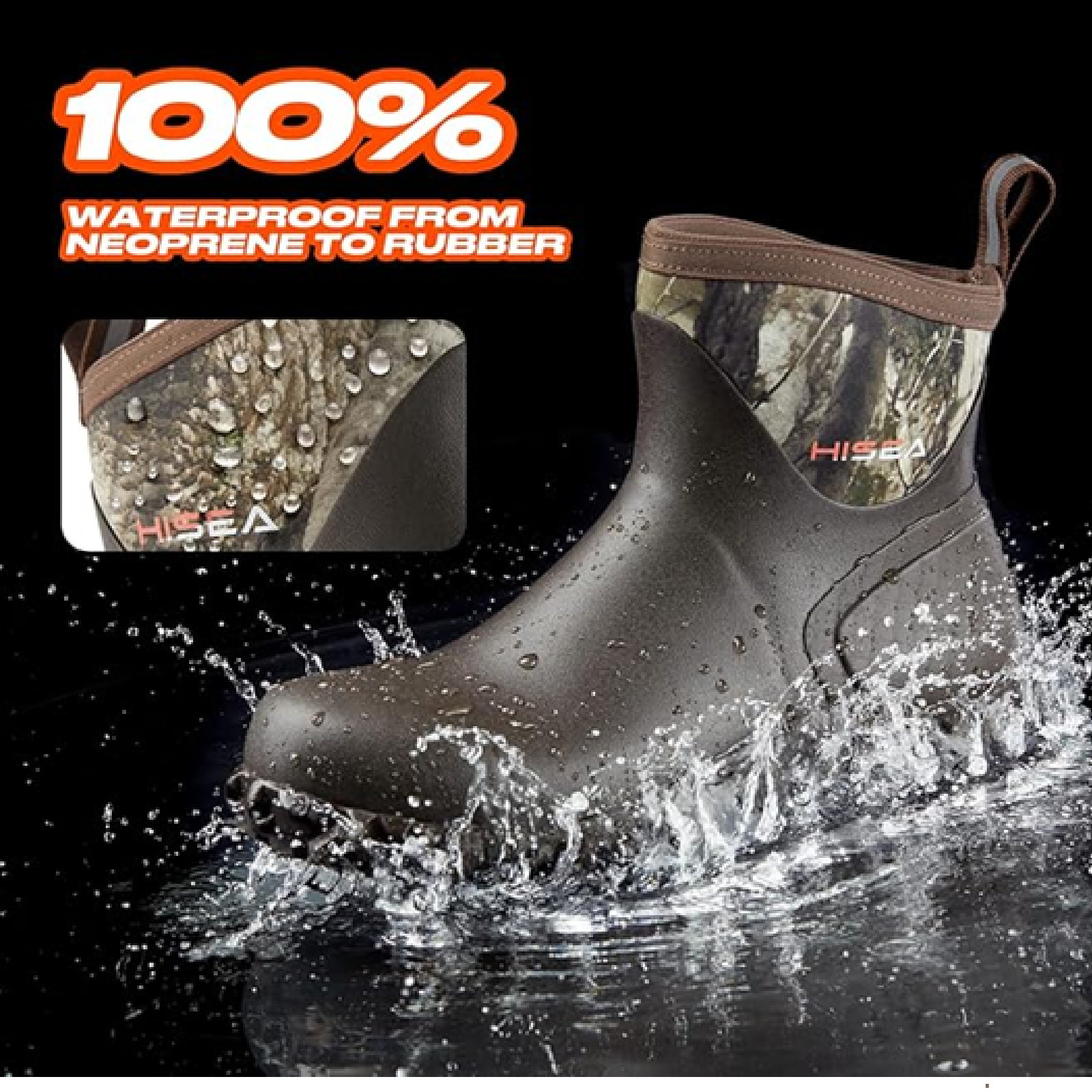 HISEA Men's Rubber Waterproof Ankle Rain Boots, 8-Inch Shaft, Black, US Size 11