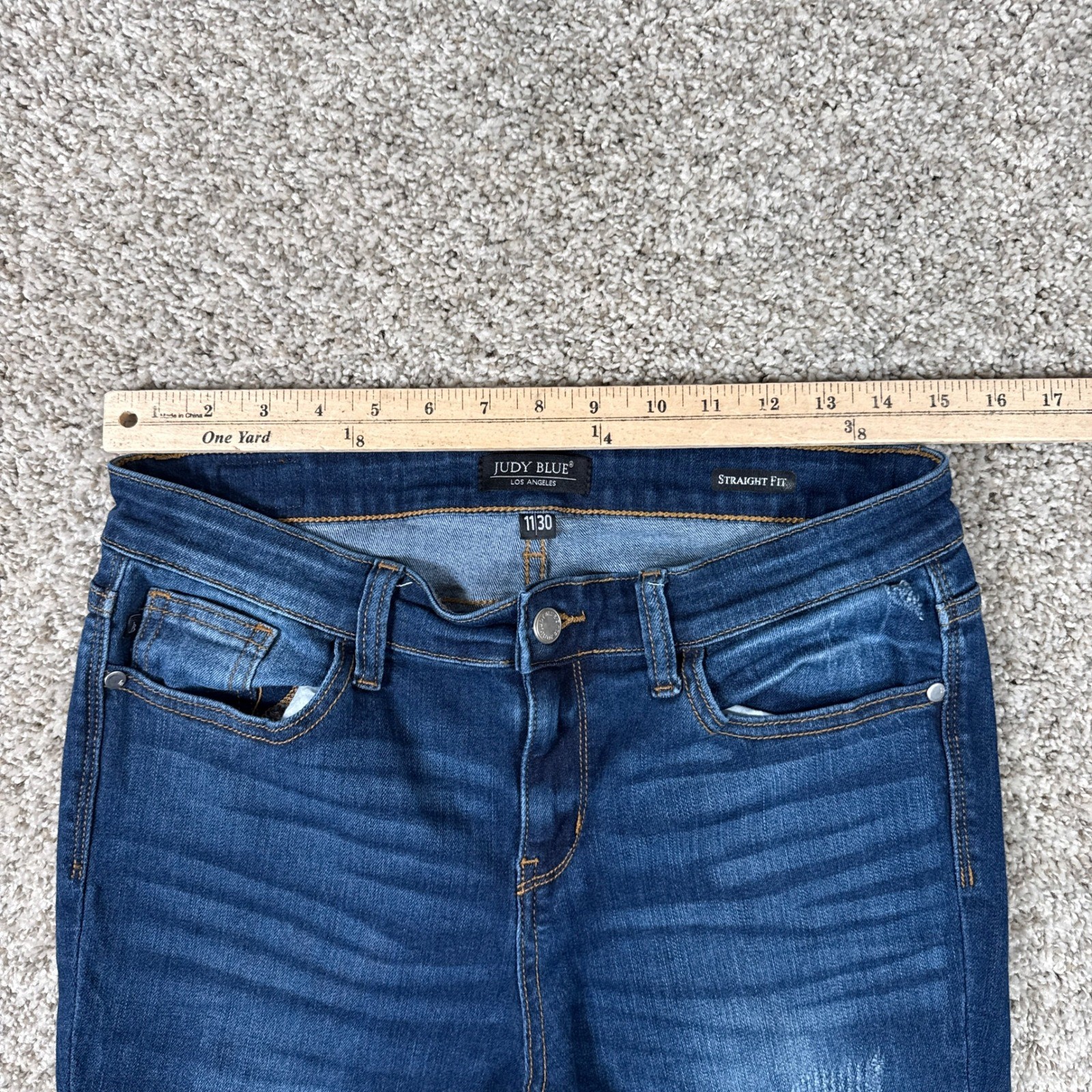 Judy Blue Jeans Womens 11/30 Straight Fit Dark Wash Distressed Stretch JB8277DK