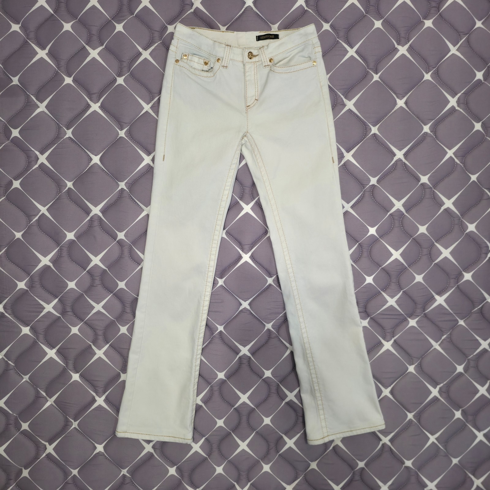 Roberto Cavalli Women Flare Jeans IT 40 26W White Gold Hardware Leopard Trim