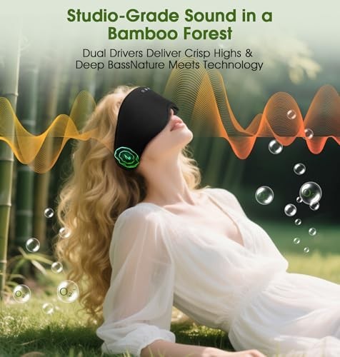 3D Soft Bamboo Cotton Sleep Mask with Bluetooth Headphones, Blackout Eye Mask fo