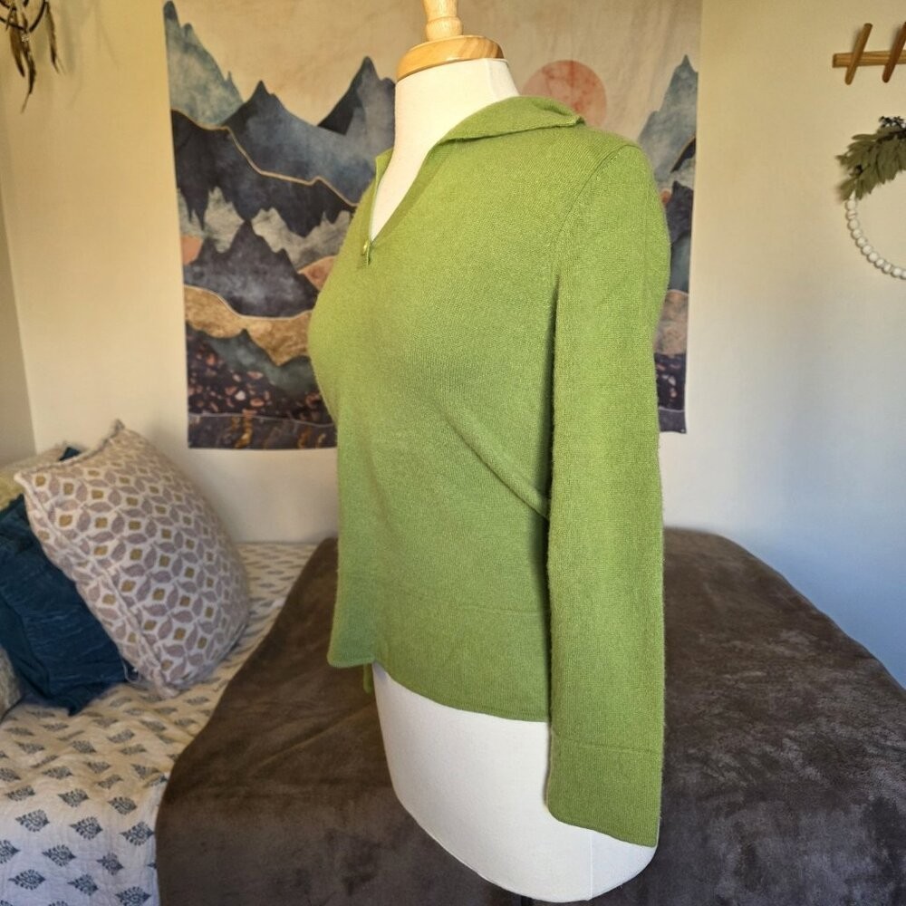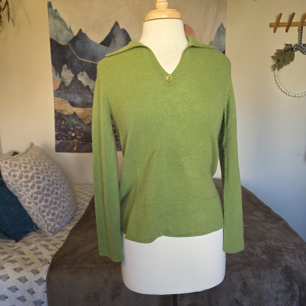как выглядит Prive 100 Cashmere Sweater Women s Small Green V Neck Pullover Soft Knit фото