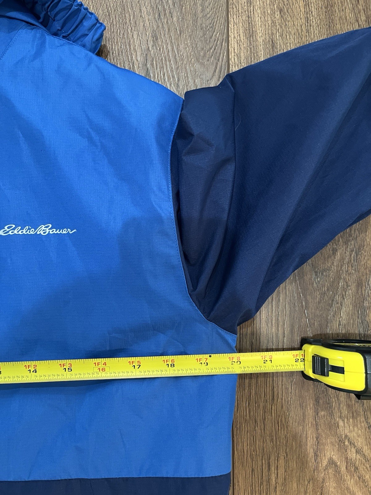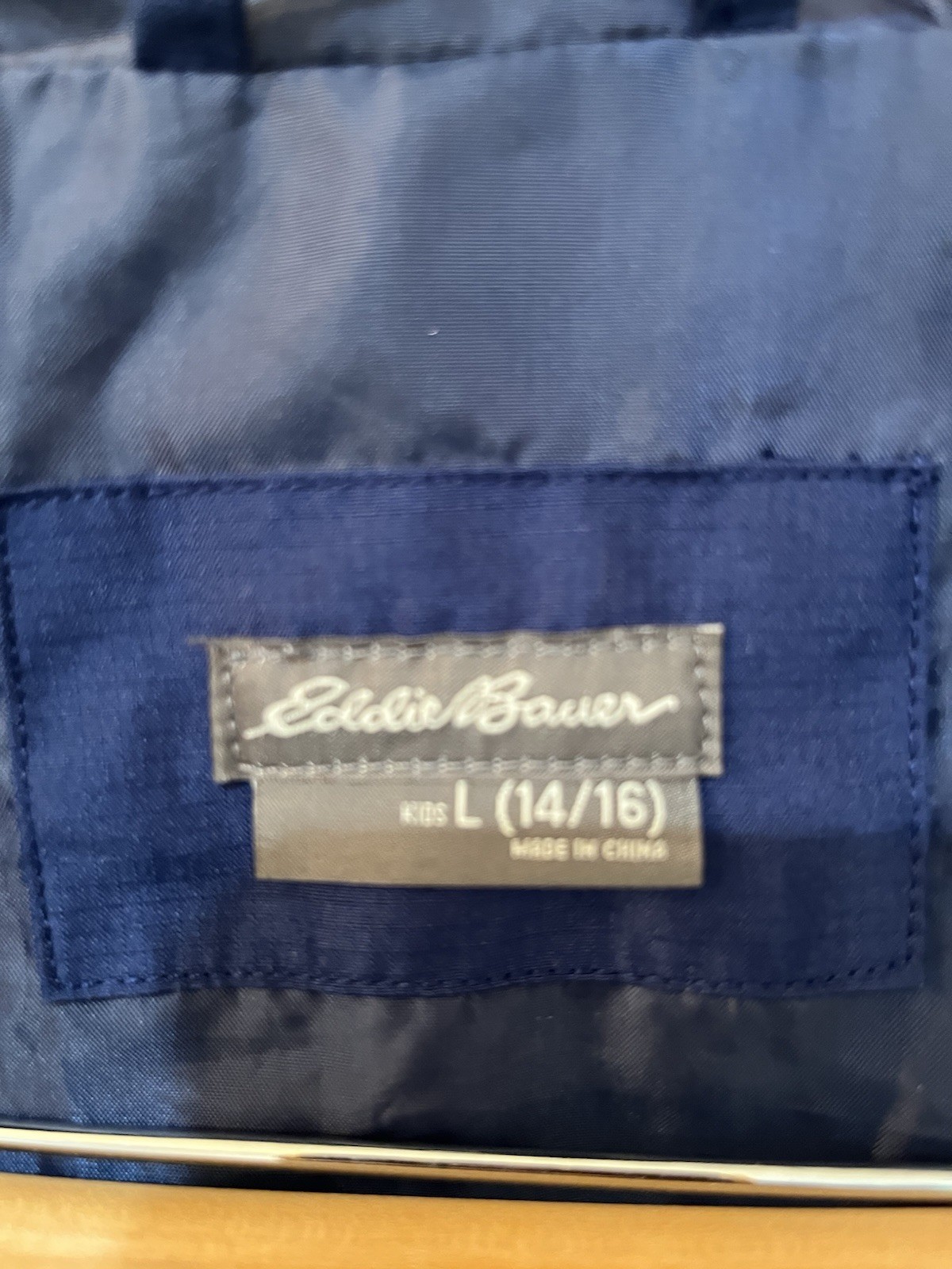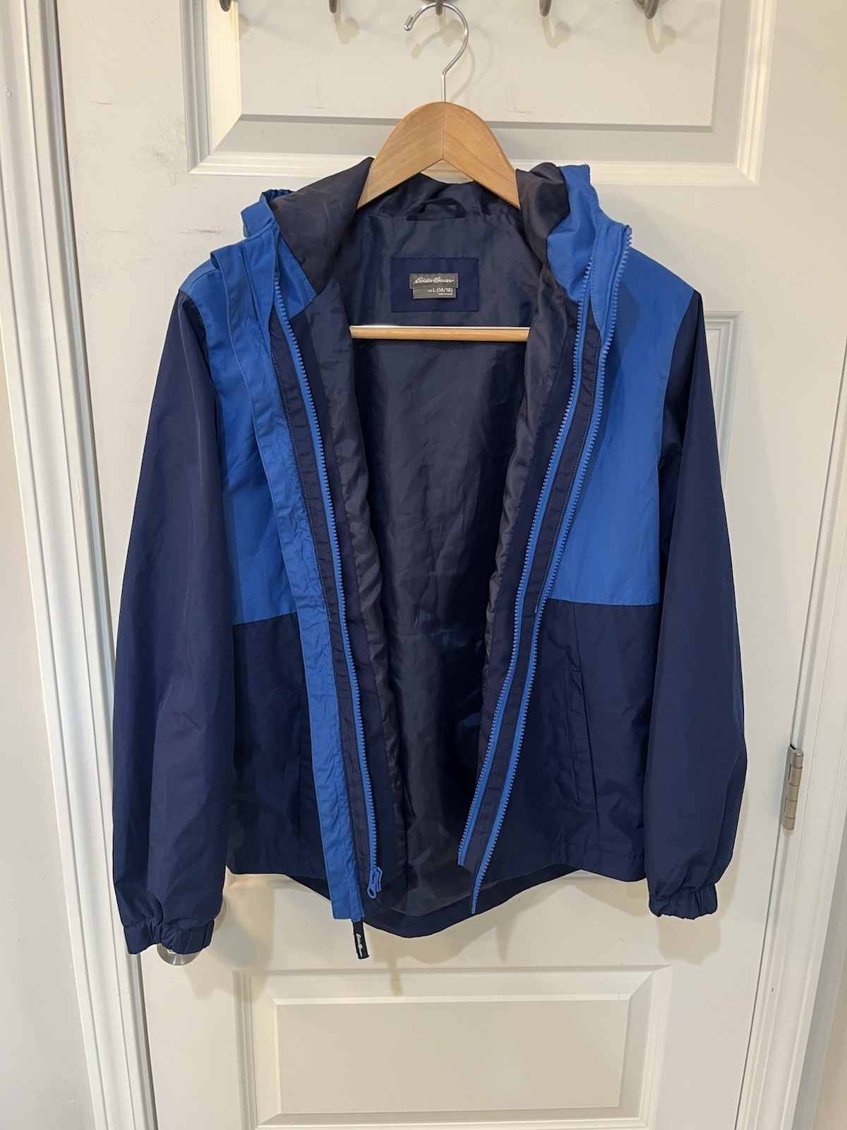 как выглядит Eddie Bauer Youth Large 14-16 Hooded Windbreaker Full Zip Jacket Blue Navy фото