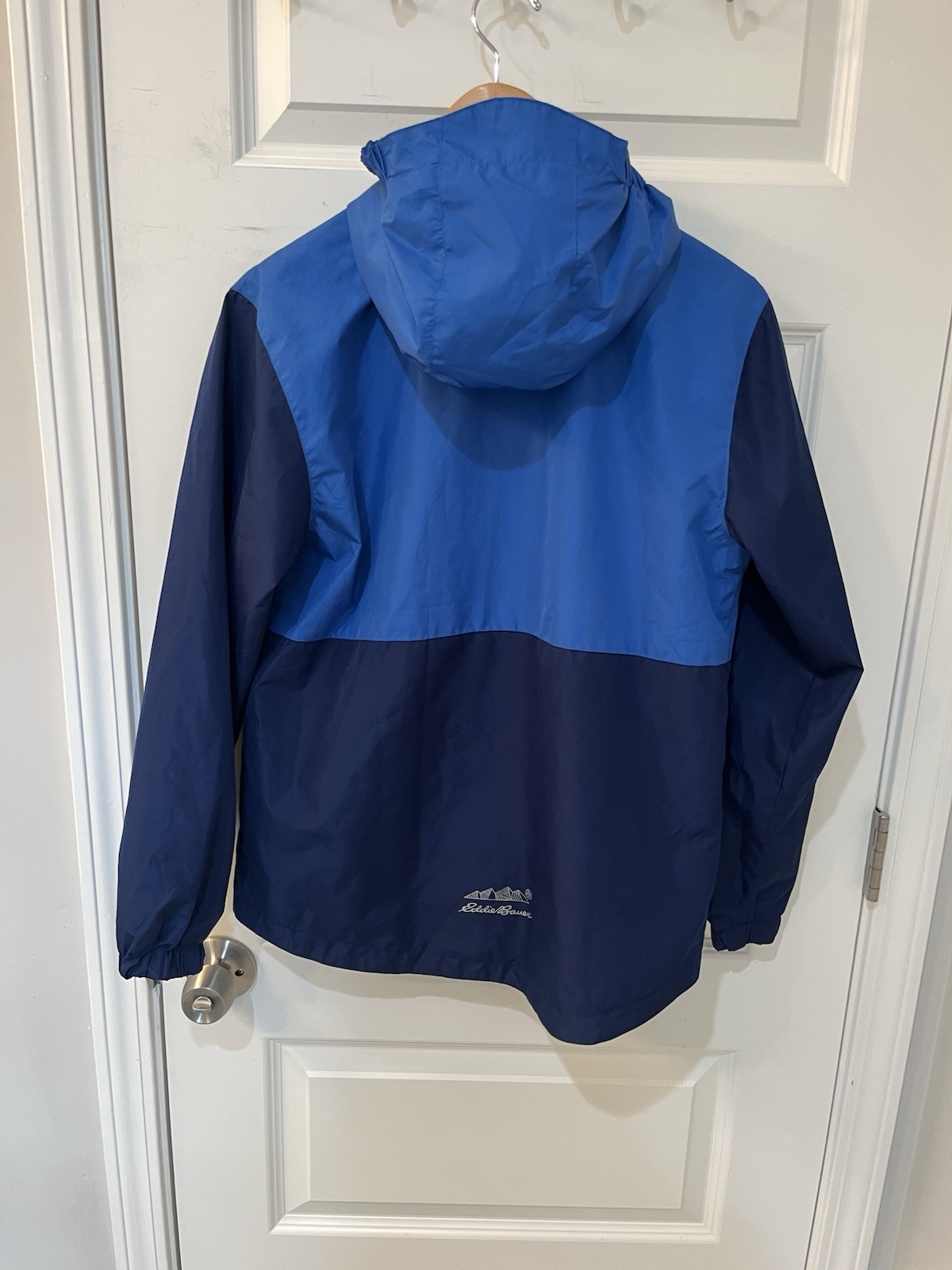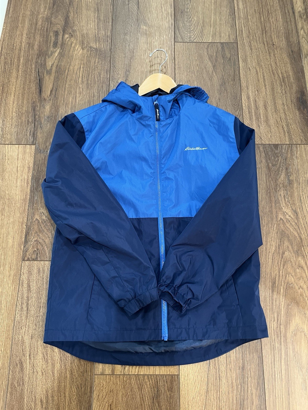Eddie Bauer Youth Large 14-16 Hooded Windbreaker Full Zip Jacket Blue Navy