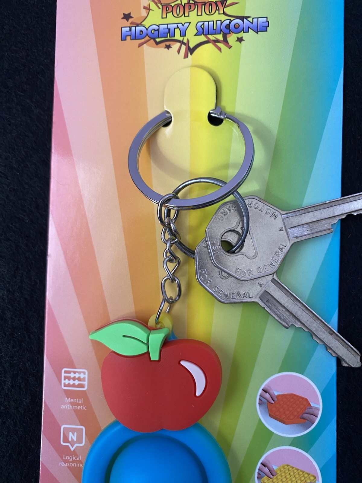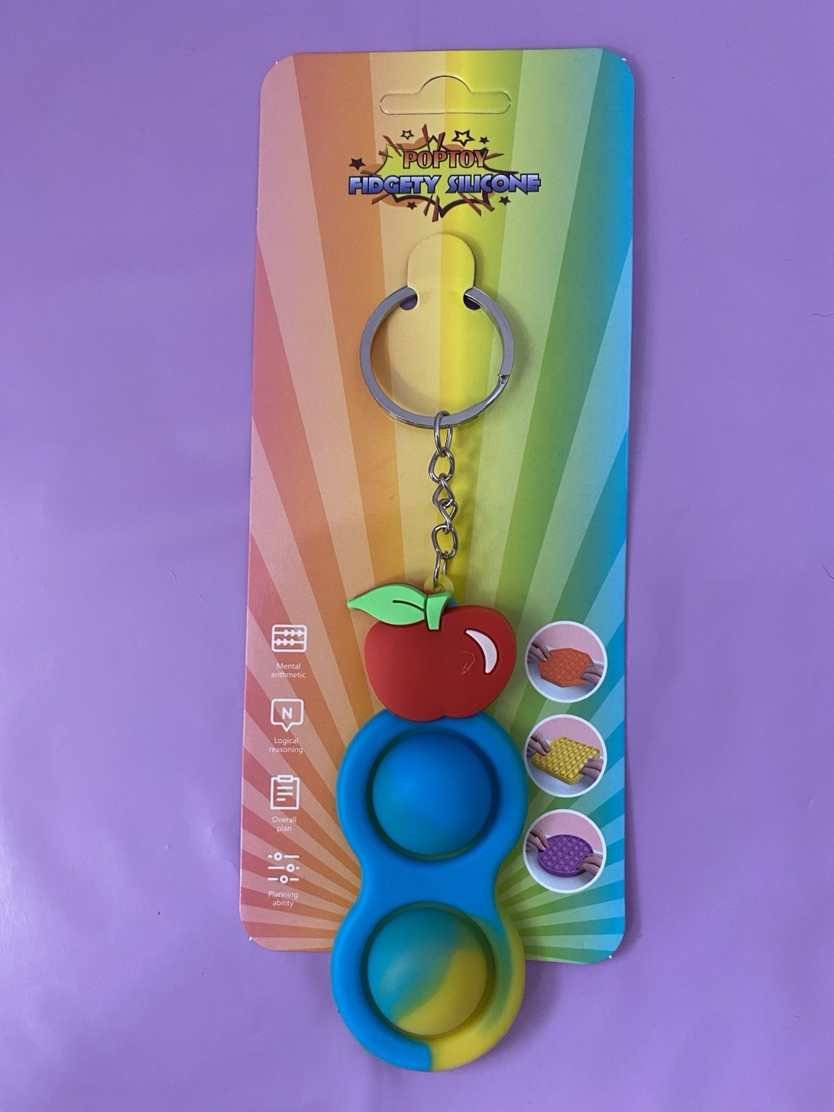 Pop Toy Fidget Silicone Sensory Keychain. Colorful Apple Theme.