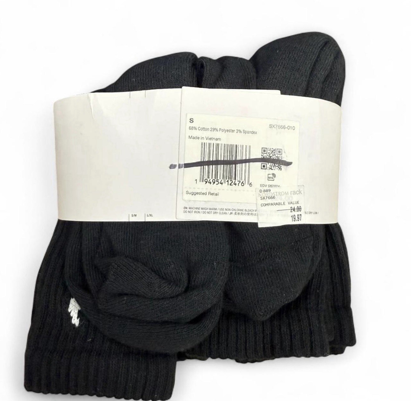 как выглядит Nike Everyday Cotton Cushioned Crew Socks Black 6 Pairs NWT 3Y-5Y / Women 4-6 фото