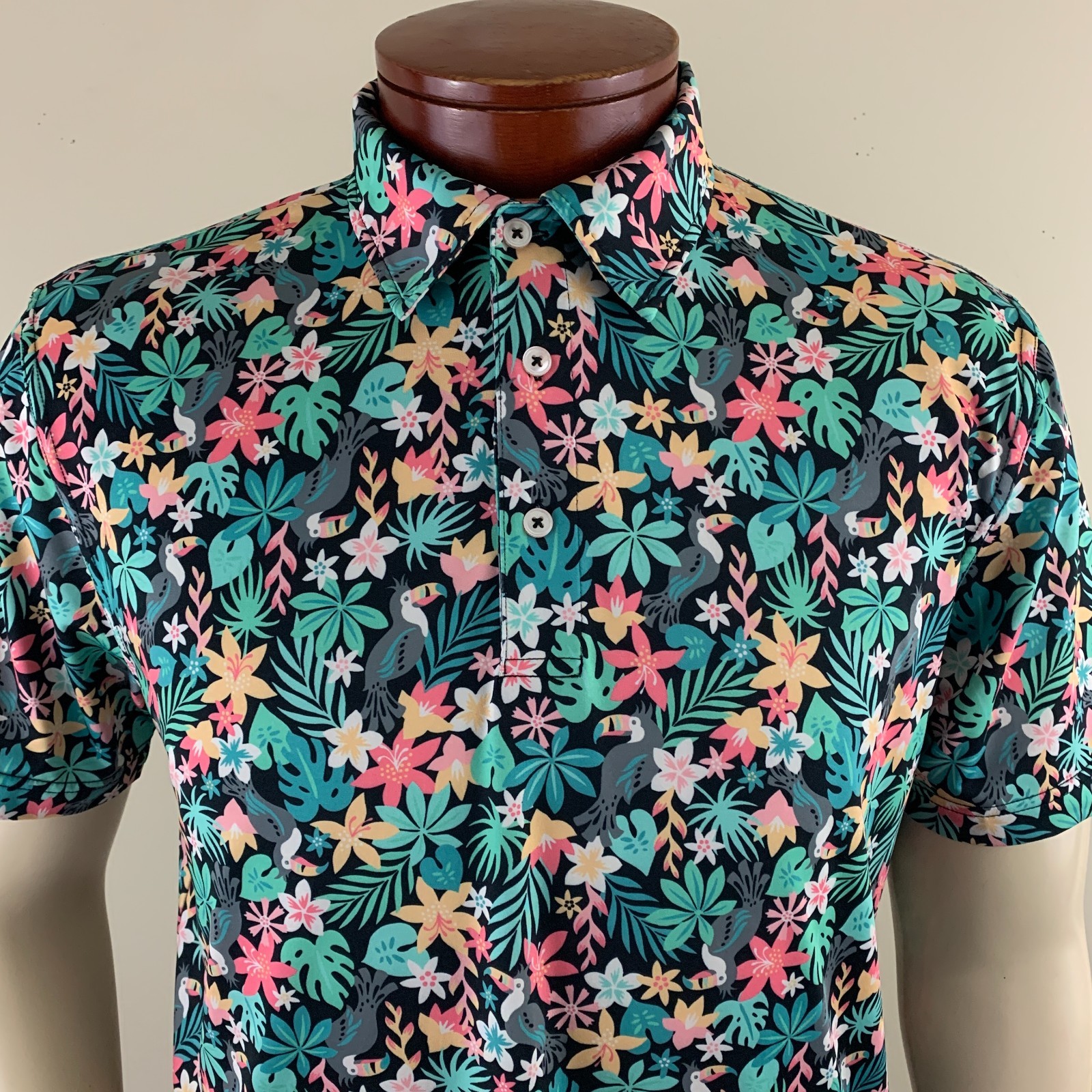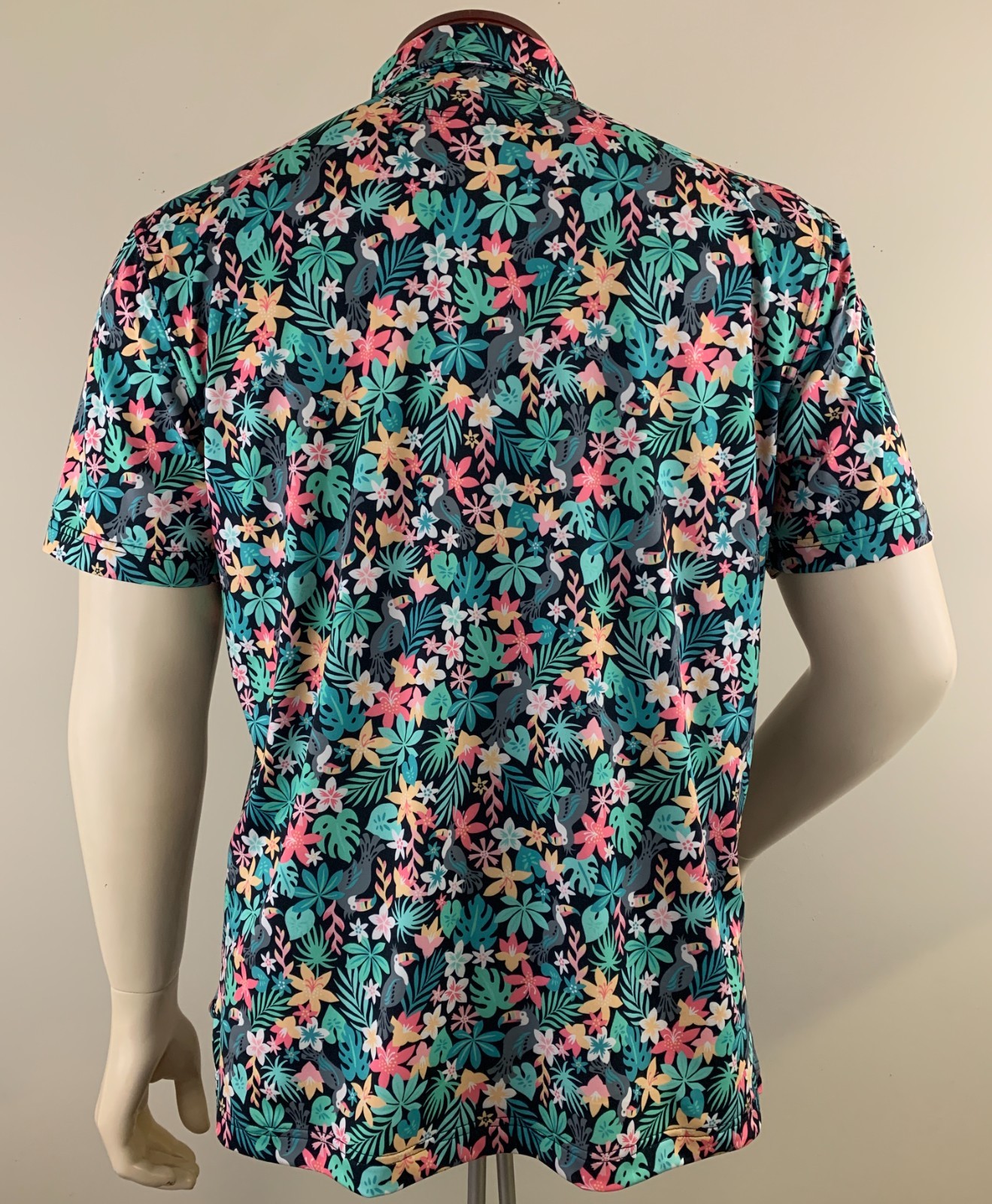 CHUBBIES Men's The Bloomerang Toucan Parrot Print Performance Golf Polo Sz M NEW