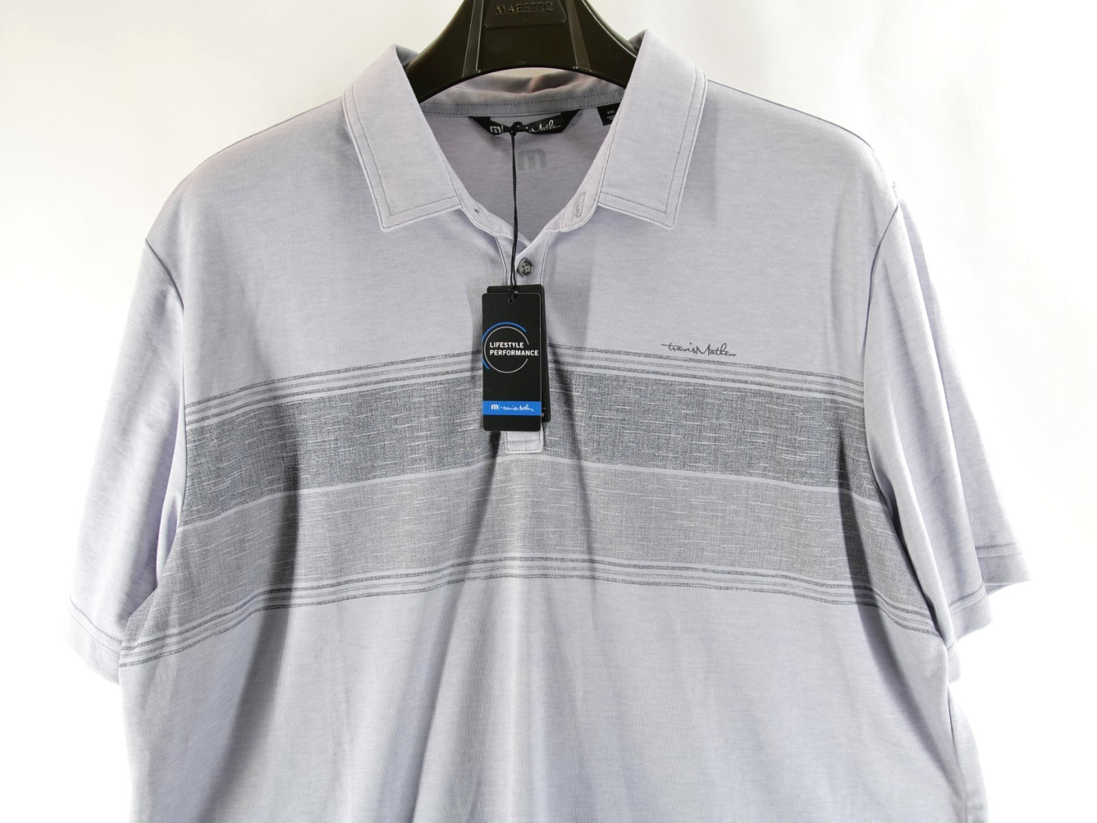 как выглядит Travis Mathew Mens XXL Polo Shirt NWT Gray Stripes Casual Short Sleeve 2XL фото