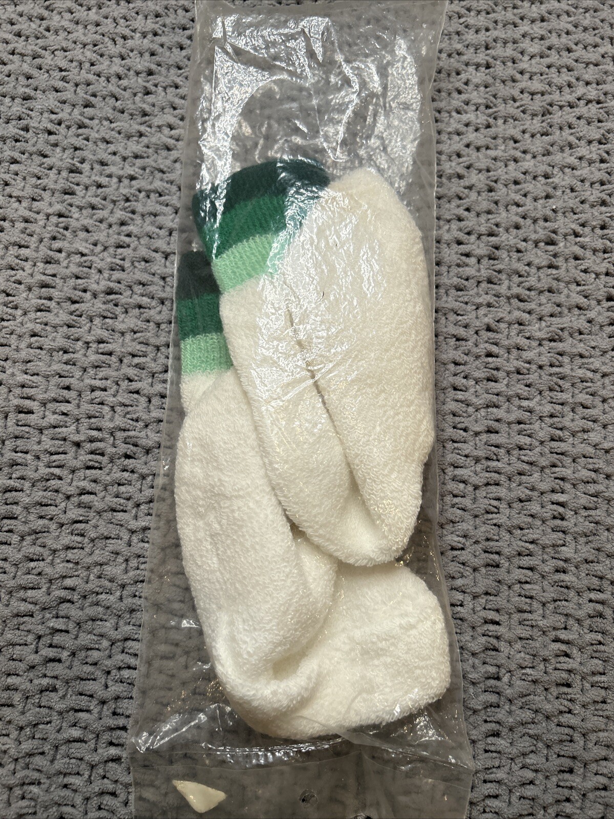 VTG Socks Orlon Acrylic 8-11 NOS 80's Irregular Terry Green Stripes Ankle 90's