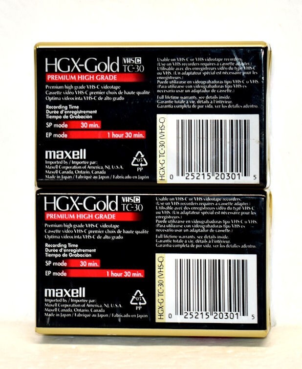 2 New Sealed MAXELL VHS-C HGX-Gold 30-Minute Premium High Grade Tapes