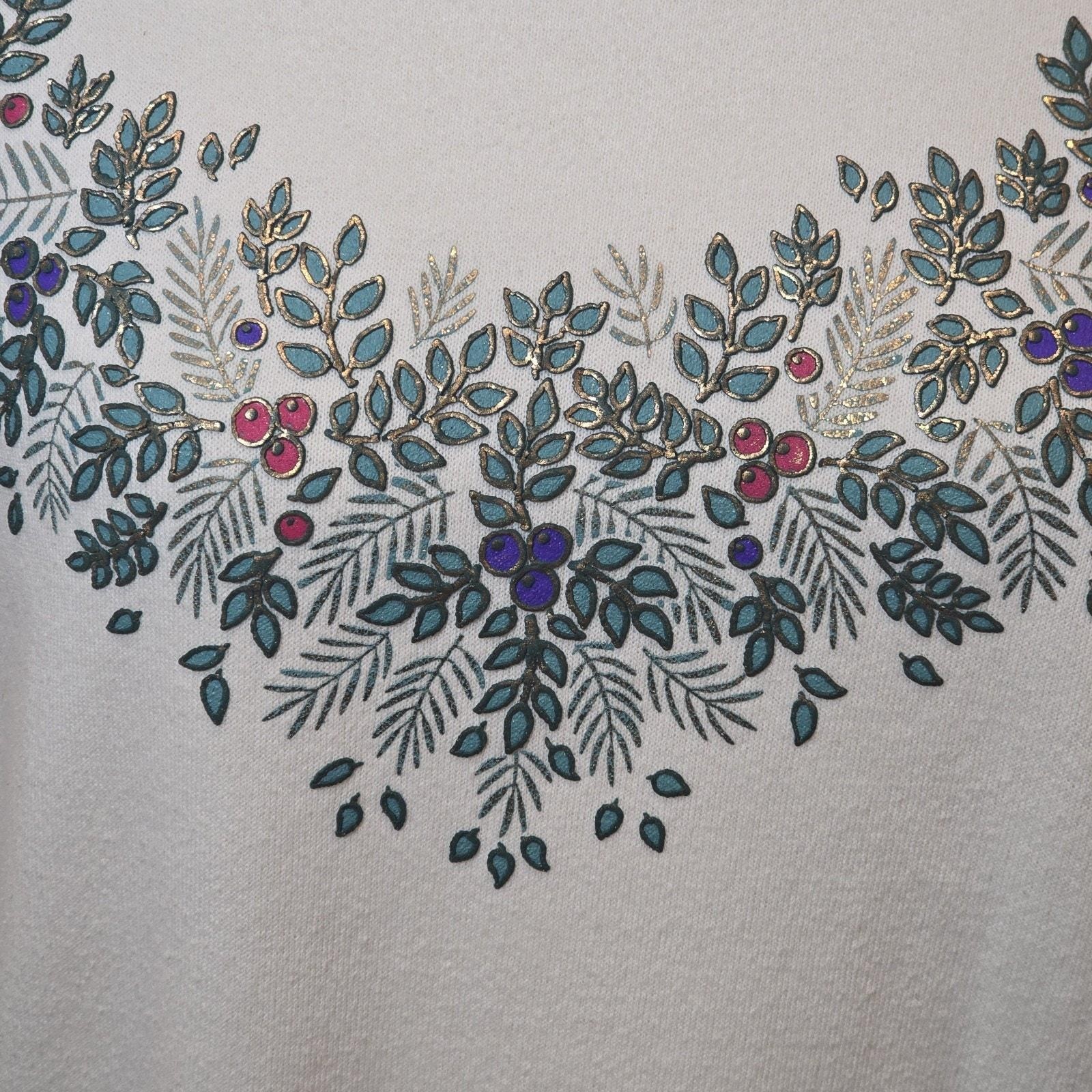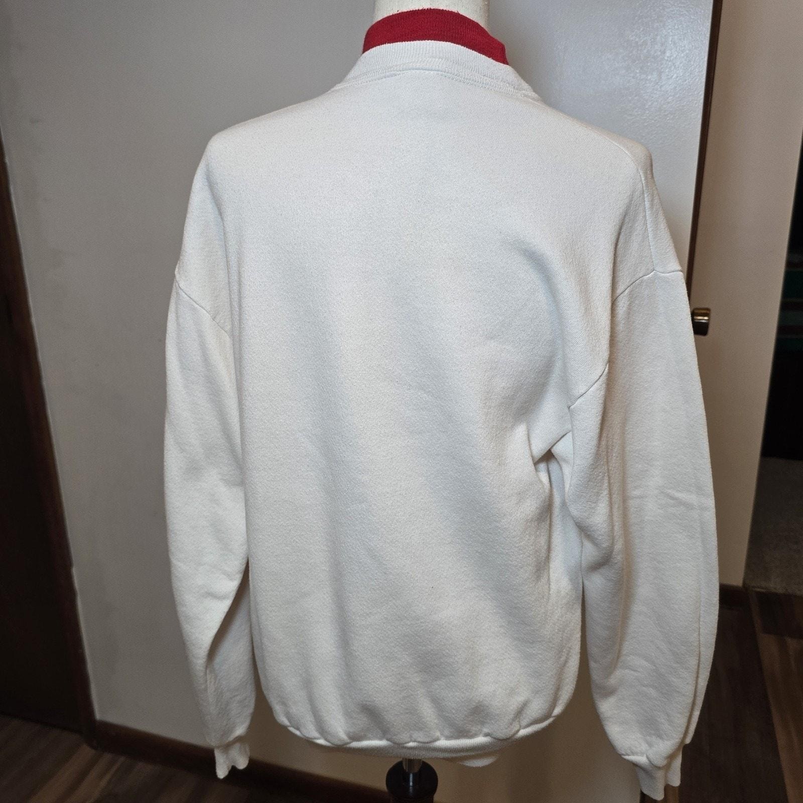 Womens 90s Vintage White Red Floral Grannycore Christmas Crewneck Sweatshirt M
