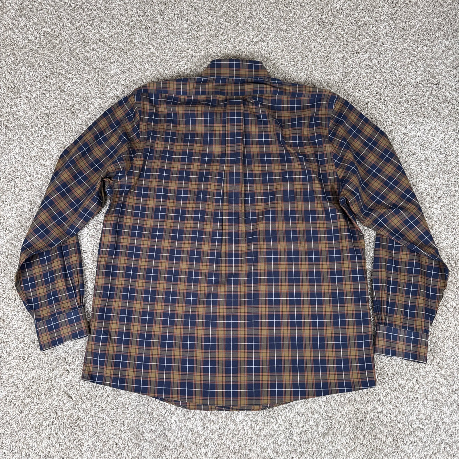Brooks Brothers Shirt Mens L Navy Brown Plaid Non Iron Regular Fit Button Down