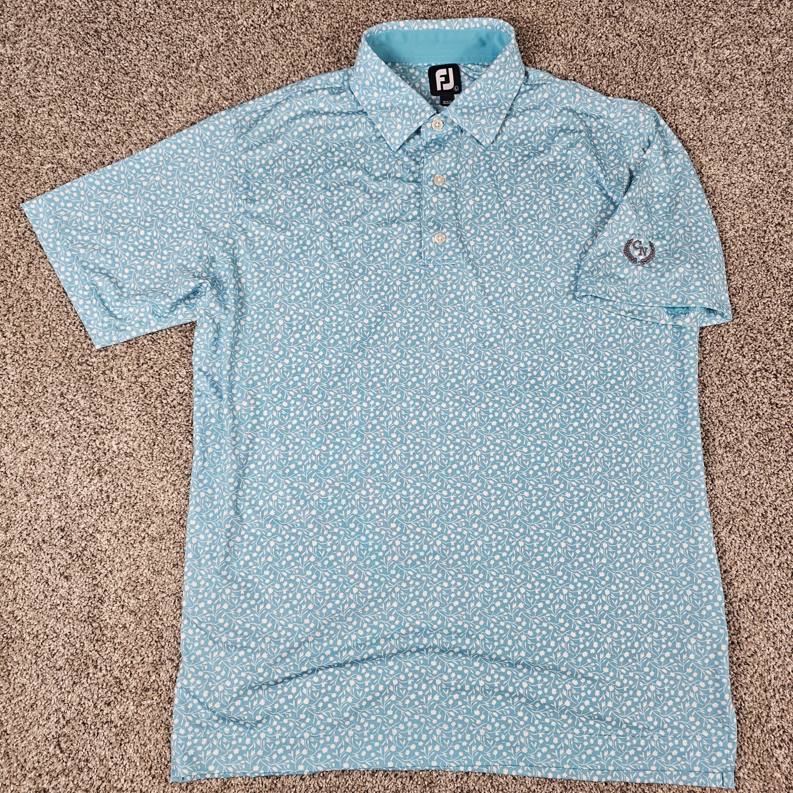 FootJoy Polo Shirt Mens Large Blue Flower AOP Golf Performance Stretch Casual
