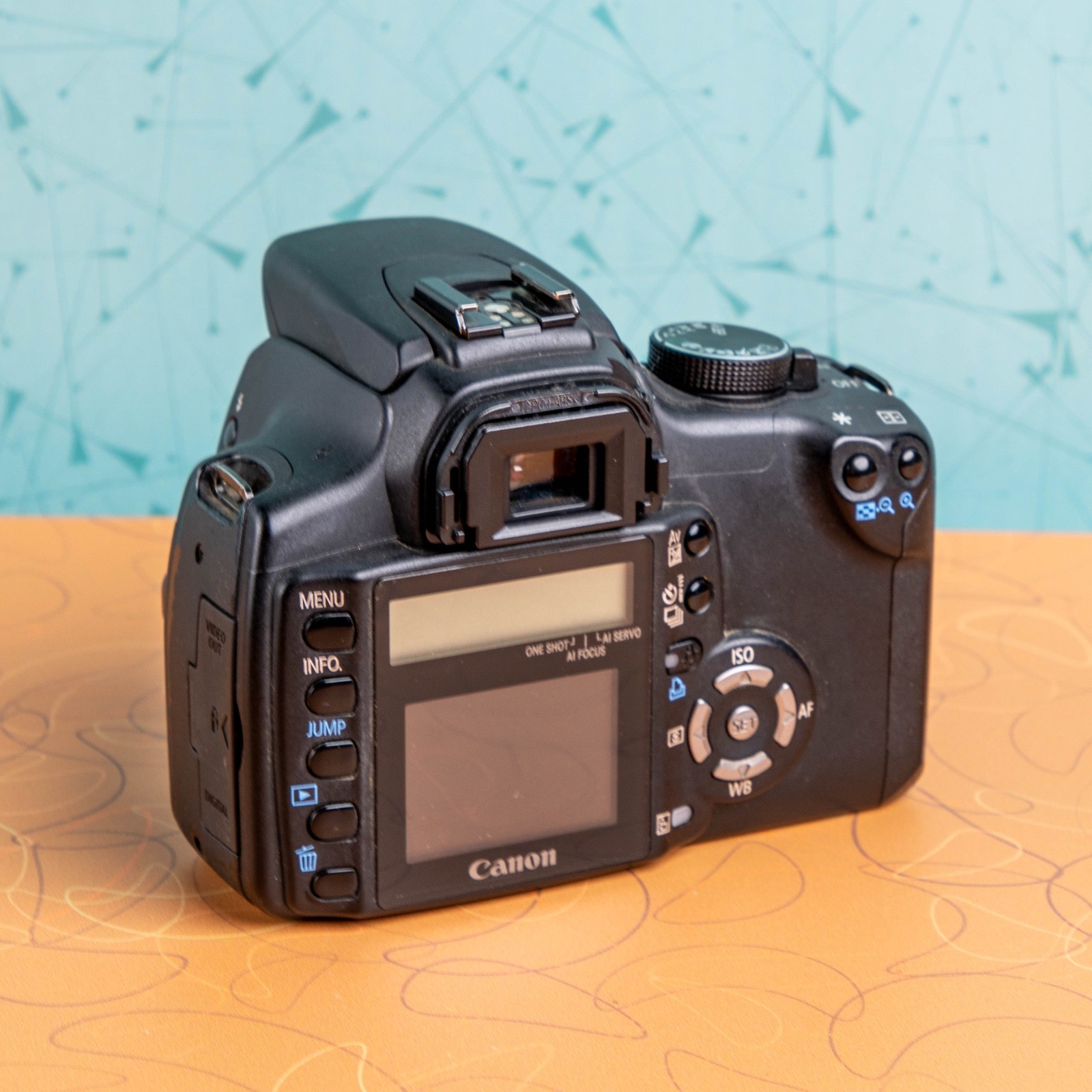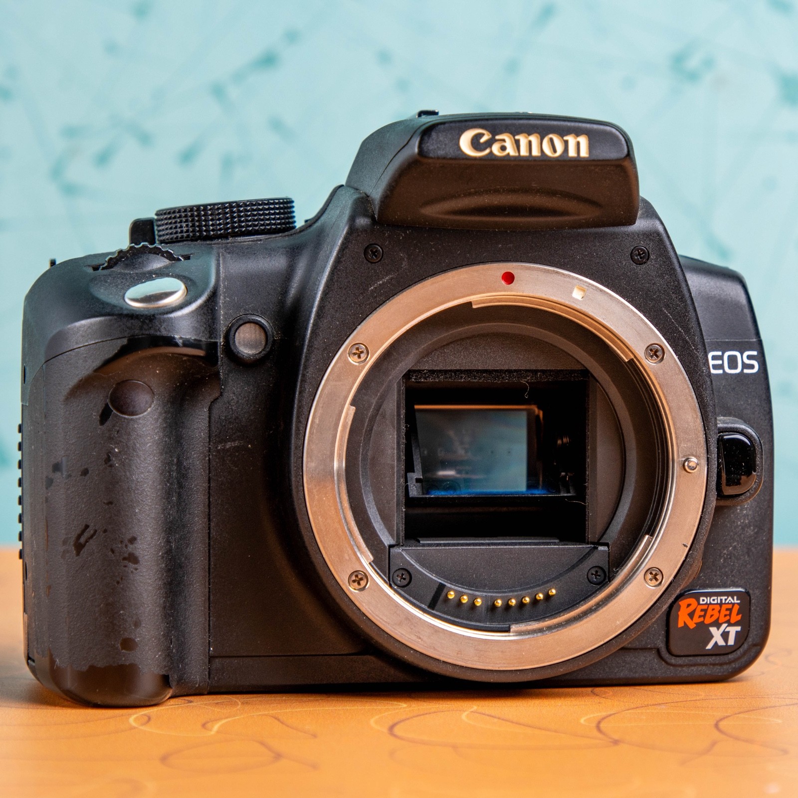 Canon EOS Rebel XT DSLR Camera Body with 3 Batteries, Charger, and 16 GB card