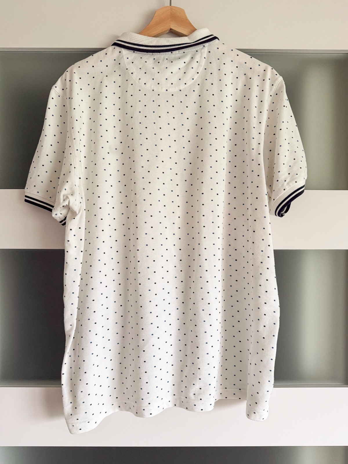 Fred Perry Square Dot Twin Tipped Polo. White / Navy / Blue. Mens XL