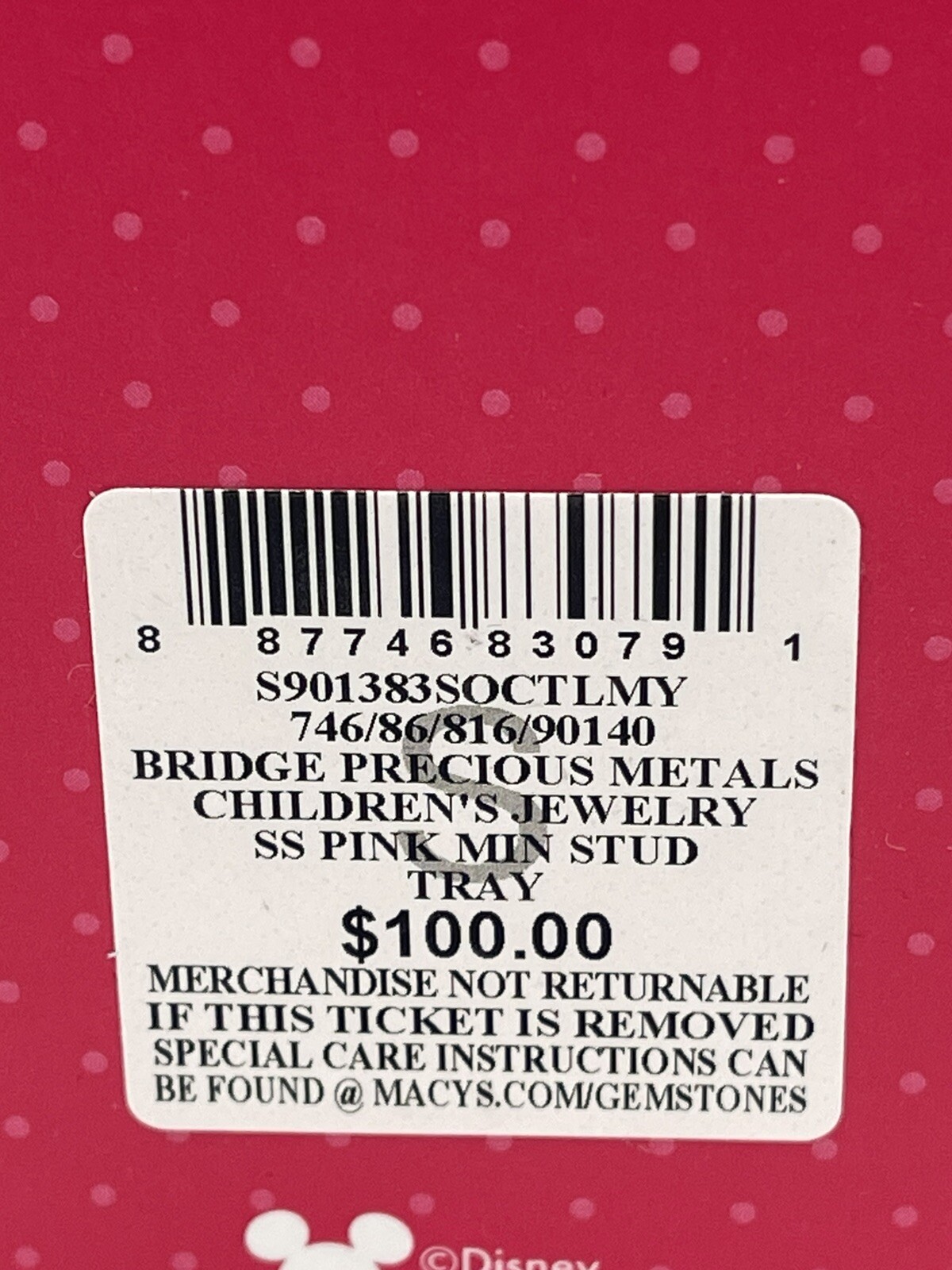 • Disney Minnie Mouse Pink Crystal Stud Earrings in Sterling Silver Trinket Dish