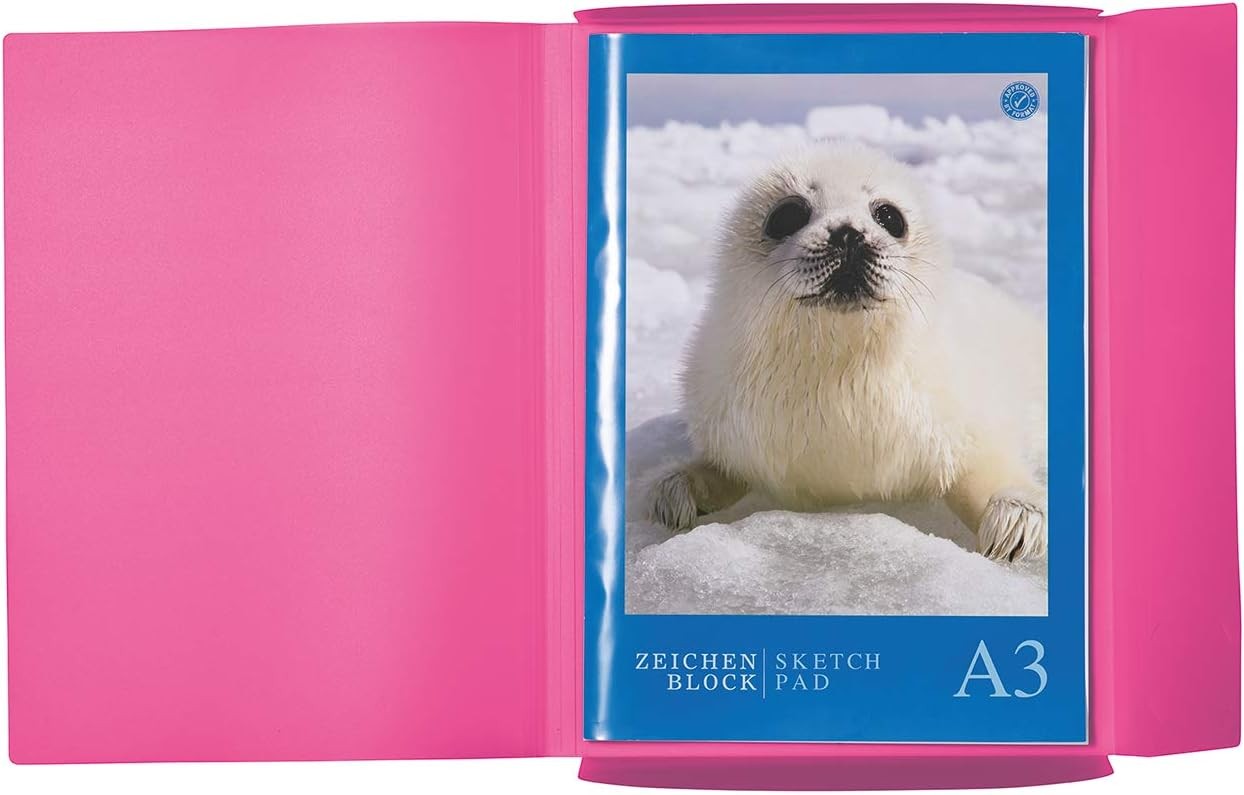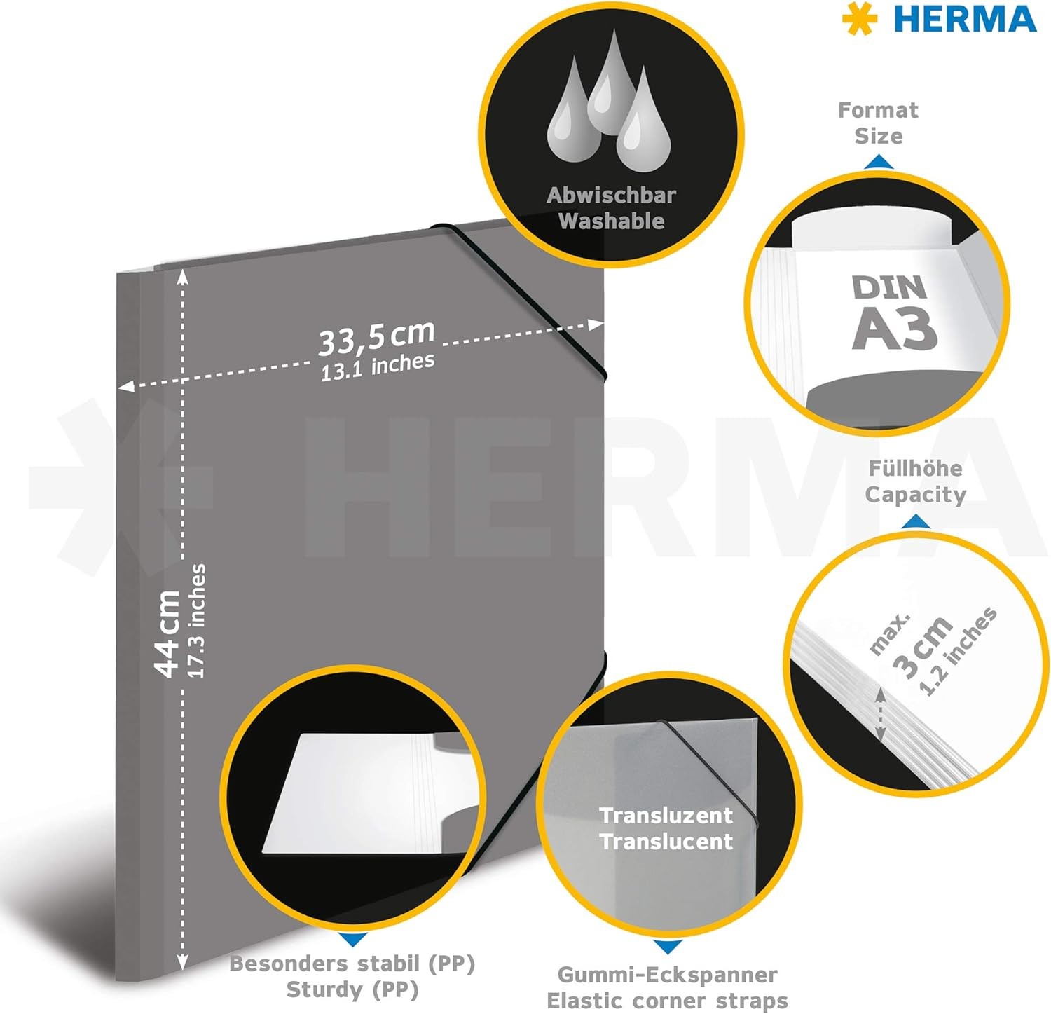 HERMA Elastic Folder Translucent in Pink, A3, Sturdy Plastic, with 3 Inner Flaps