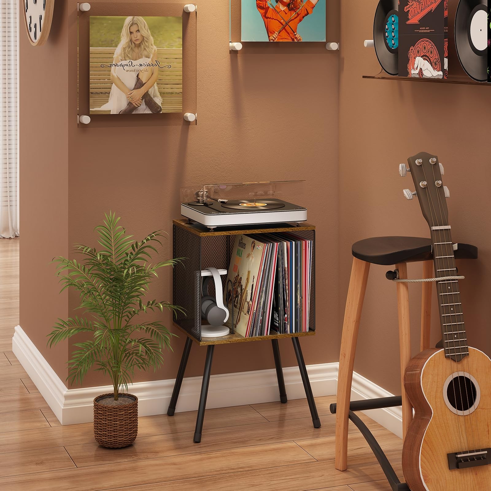 Xcosrack Record Player Stand with Storage up to 100 Albums, Retro Small Vinyl...