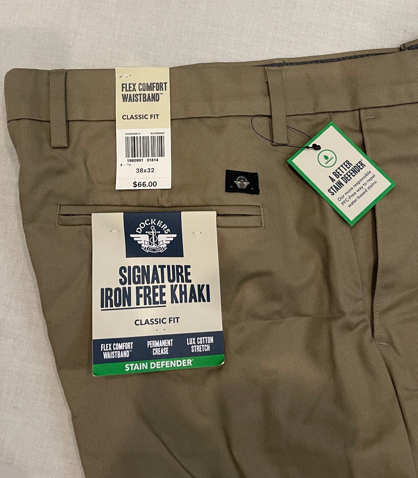 Dockers Signature Mens Iron Free Khaki Classic Fit 38X32 Stain Defender