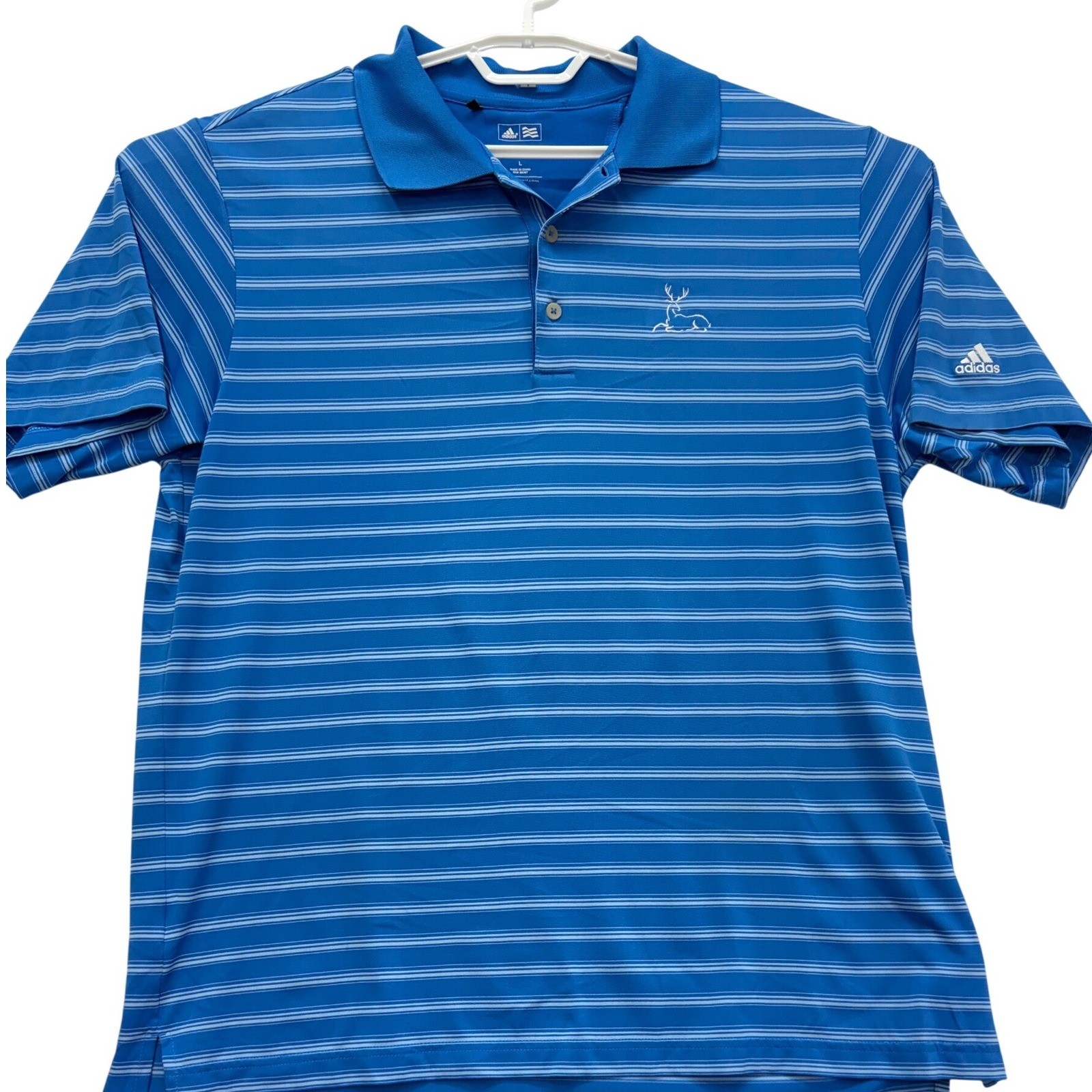 как выглядит Adidas Polo Shirt Mens Lrg Blue Striped Climalite Golf Performance Short Sleeve фото