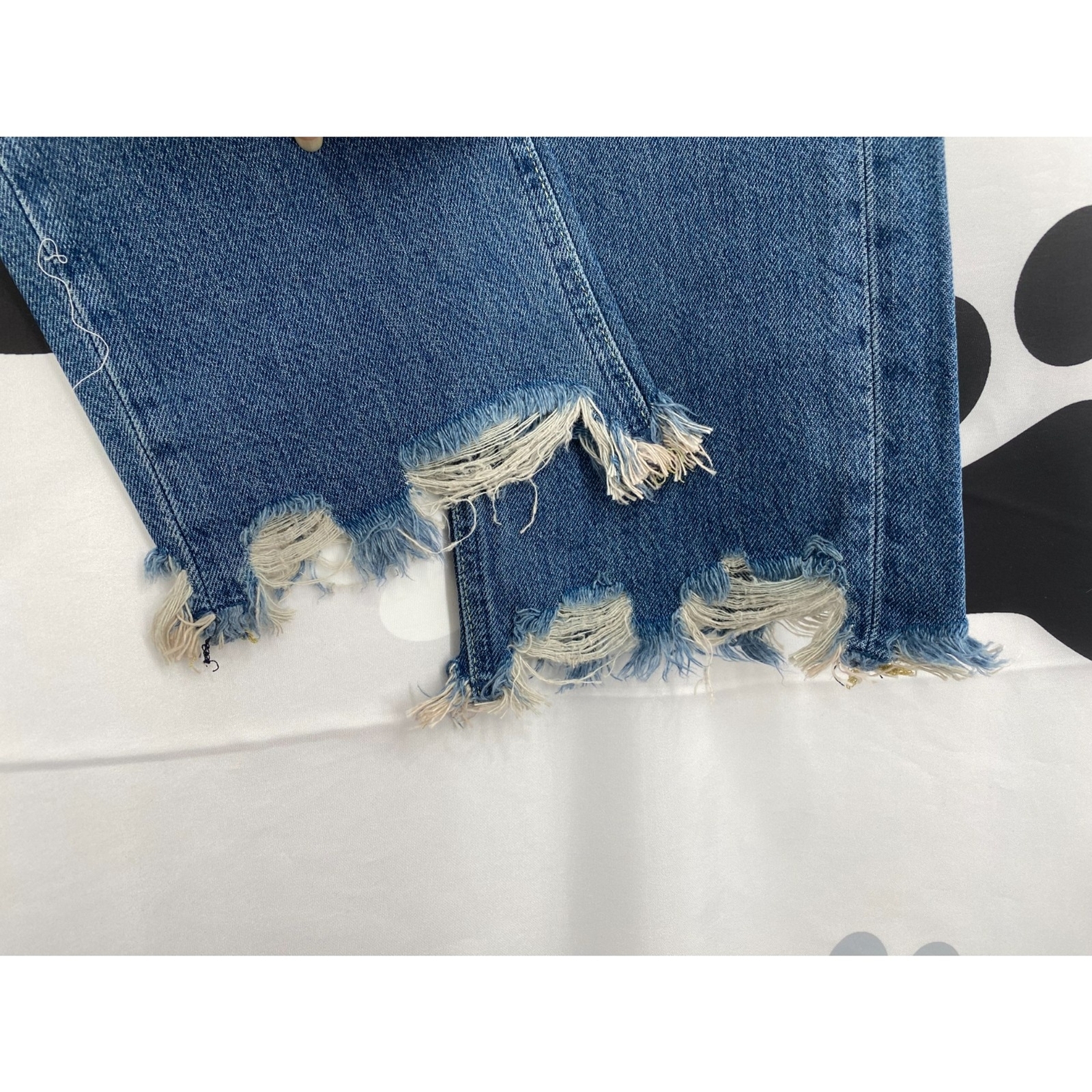 как выглядит Free People NWT Maggie Mid Rise Straight Leg Blue Denim Chewed Hem Jeans 29 New фото