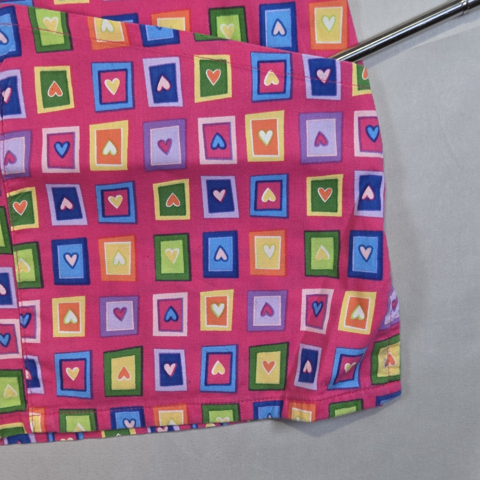 Dickies Women's XL Scrub Top/Shirt V-Neck Pink Hearts Colorful Tie In Back EUC
