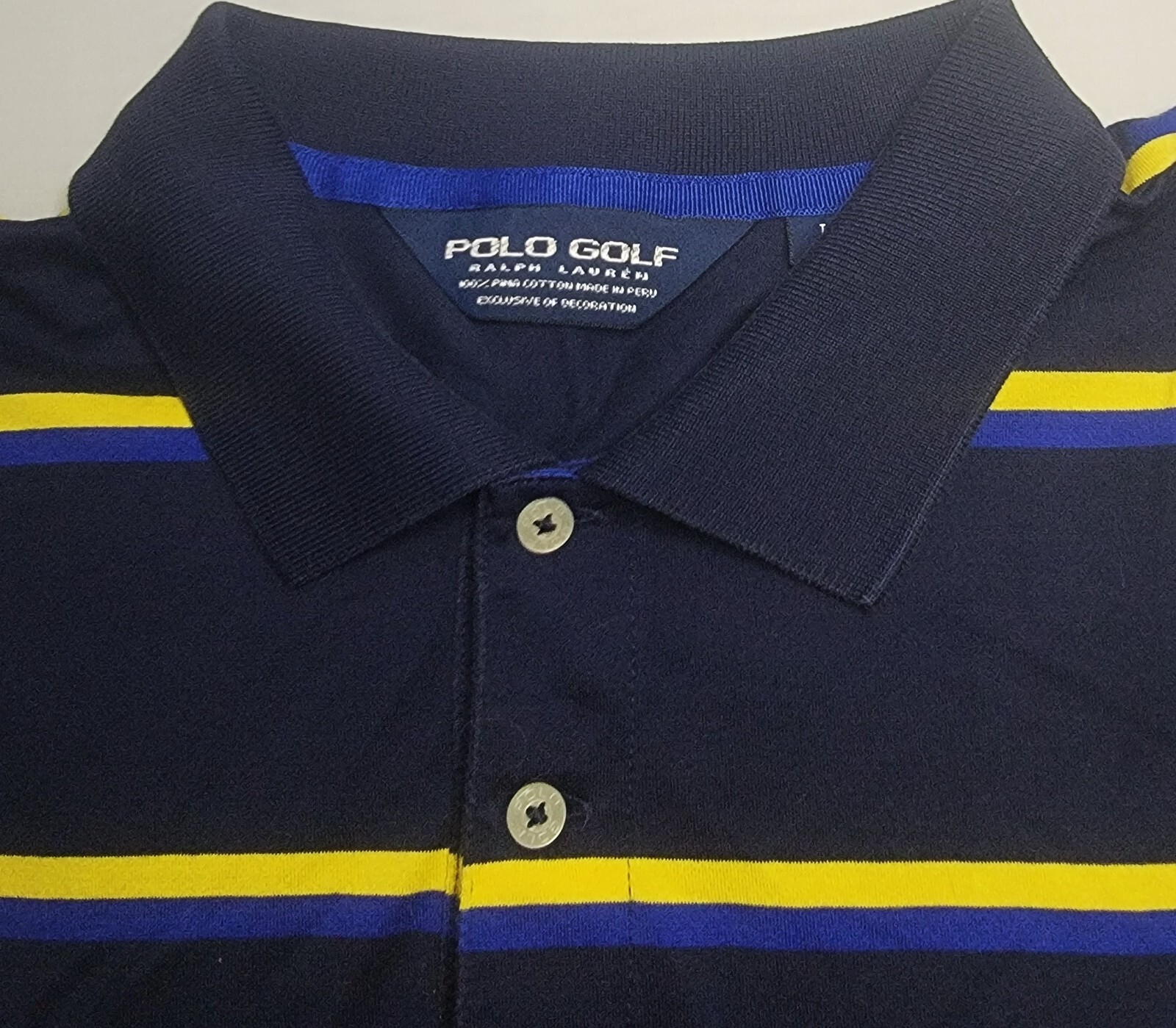 как выглядит Mens Polo Golf Ralph Lauren Short Sleeved Navy Striped Polo Shirt Large - EUC фото