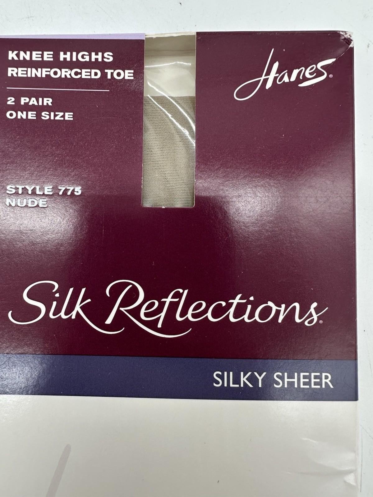 NEW Hanes Silk Reflections Silky Sheer Knee Highs 2 Pair Nude One Size