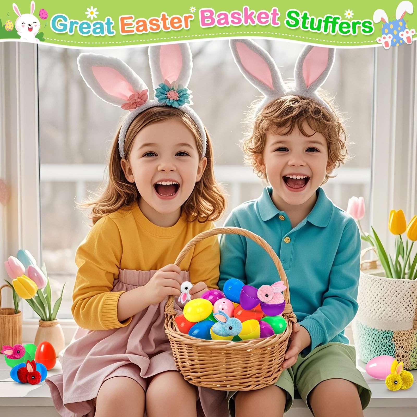 24 Pack PreFilled Easter Eggs with Bunny Toys Inside, Multicolor Plush Toys f